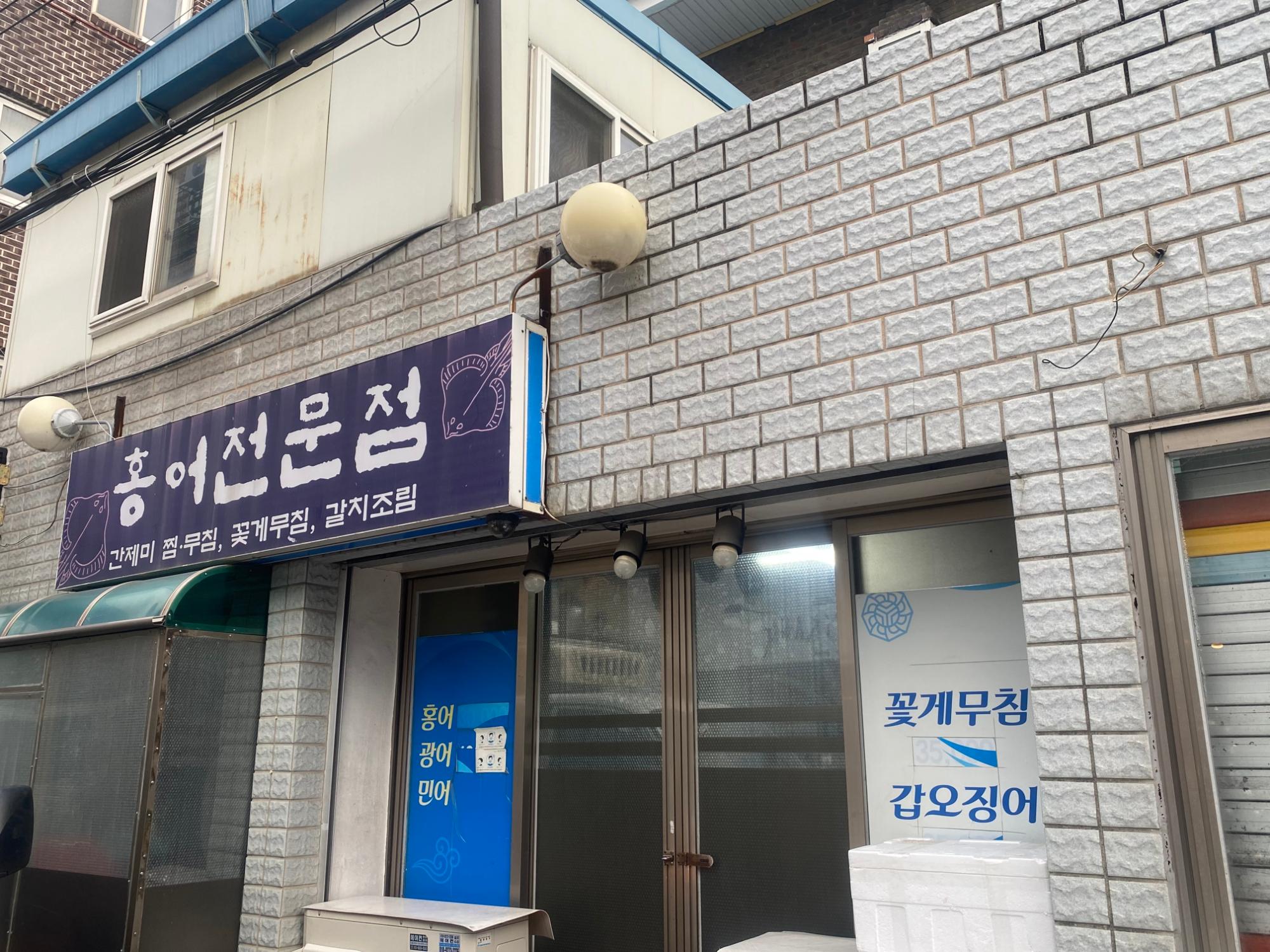 홍어전문점 가게 전경사진이다. 흑산도가 고향인 사장님의 남편분이 어업을 하면서 인천으로 오게 되었다. 그러면서 자연스럽게 고향음식인 홍어를 전문적으로 하는 홍어전문점을 하게 되었다.