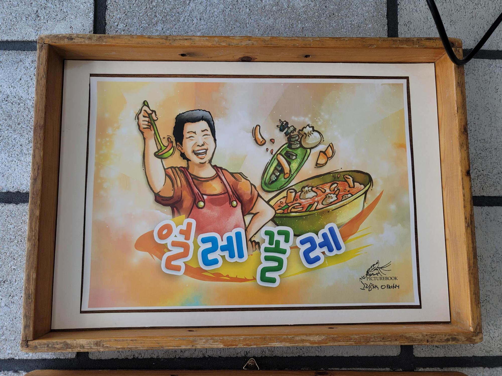 얼레꼴레만두의 가게내부 사진이다. 이전가게보다 더 쾌적해졌으며, 많은 손님들을 수용할 수 있는 가게로 바뀌었다. 또 이전가게에서 볼 수 있는 그림들이 있으며, 얼레꼴레만두의 예전사진도 함께 볼 수 있다.