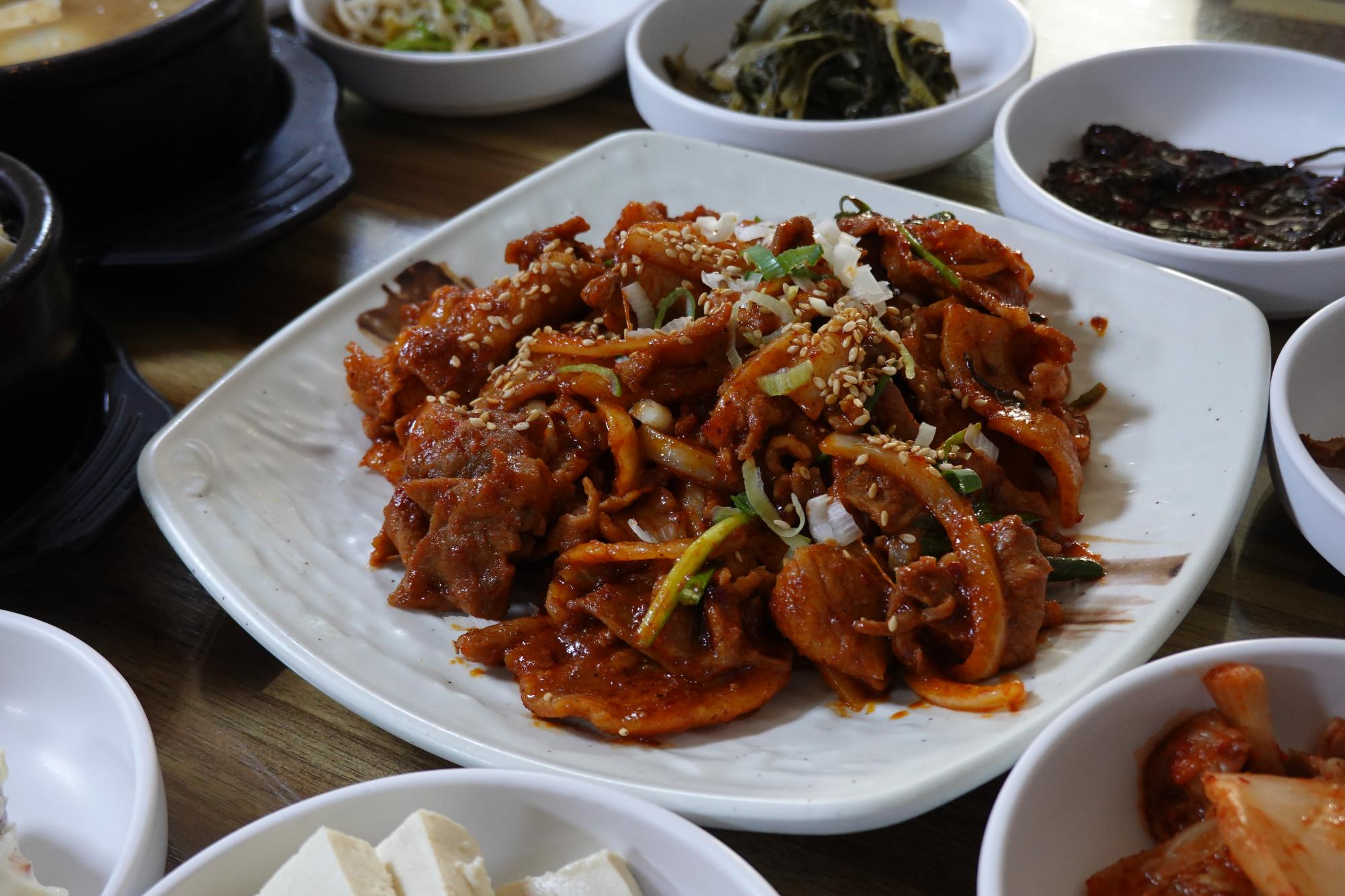 숭의쌈밥 제육사진이다. 대표메뉴인 제육은 손님들에게 인기많은 음식이다. 사장님의 비법소스로 완성된 제육은 쌈과 조화롭게 어울린다.