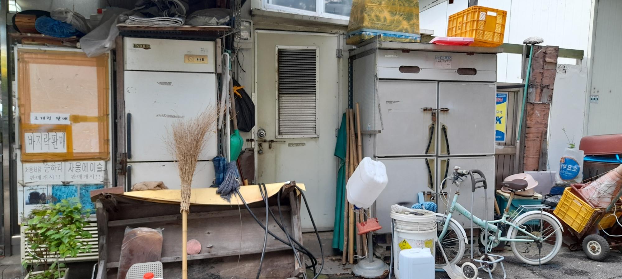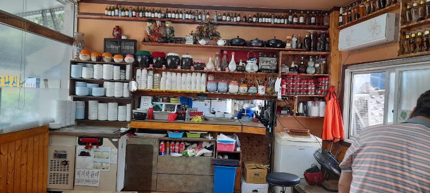 호남식당 가게내부 사진이다. 가게내부는 사장님이 직접 담근 술이 진열되어 있으며, 뒷마당에는 창고로 사용하는 냉장고가 있다.