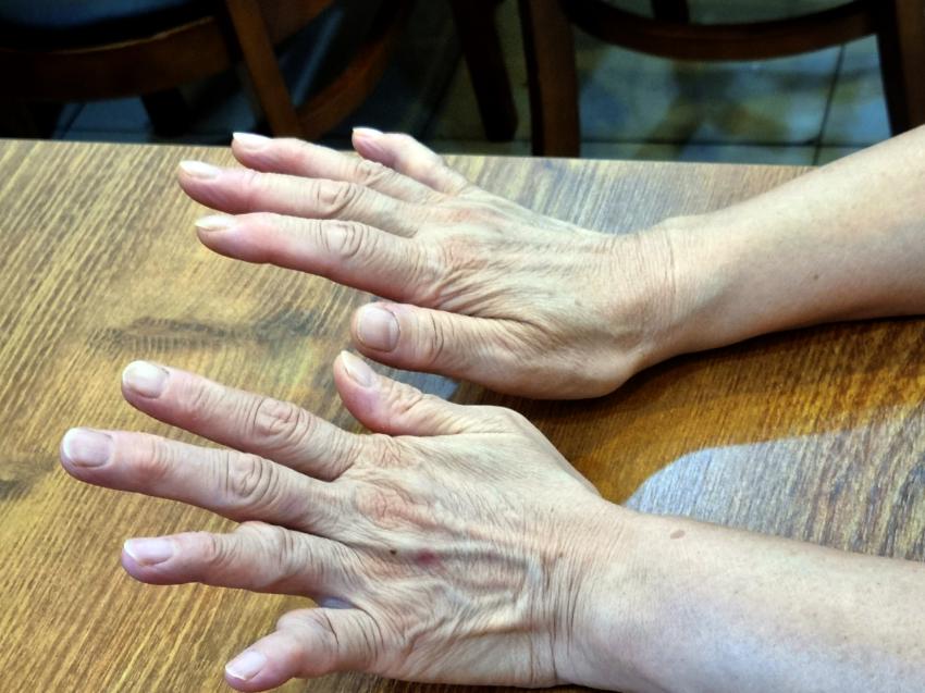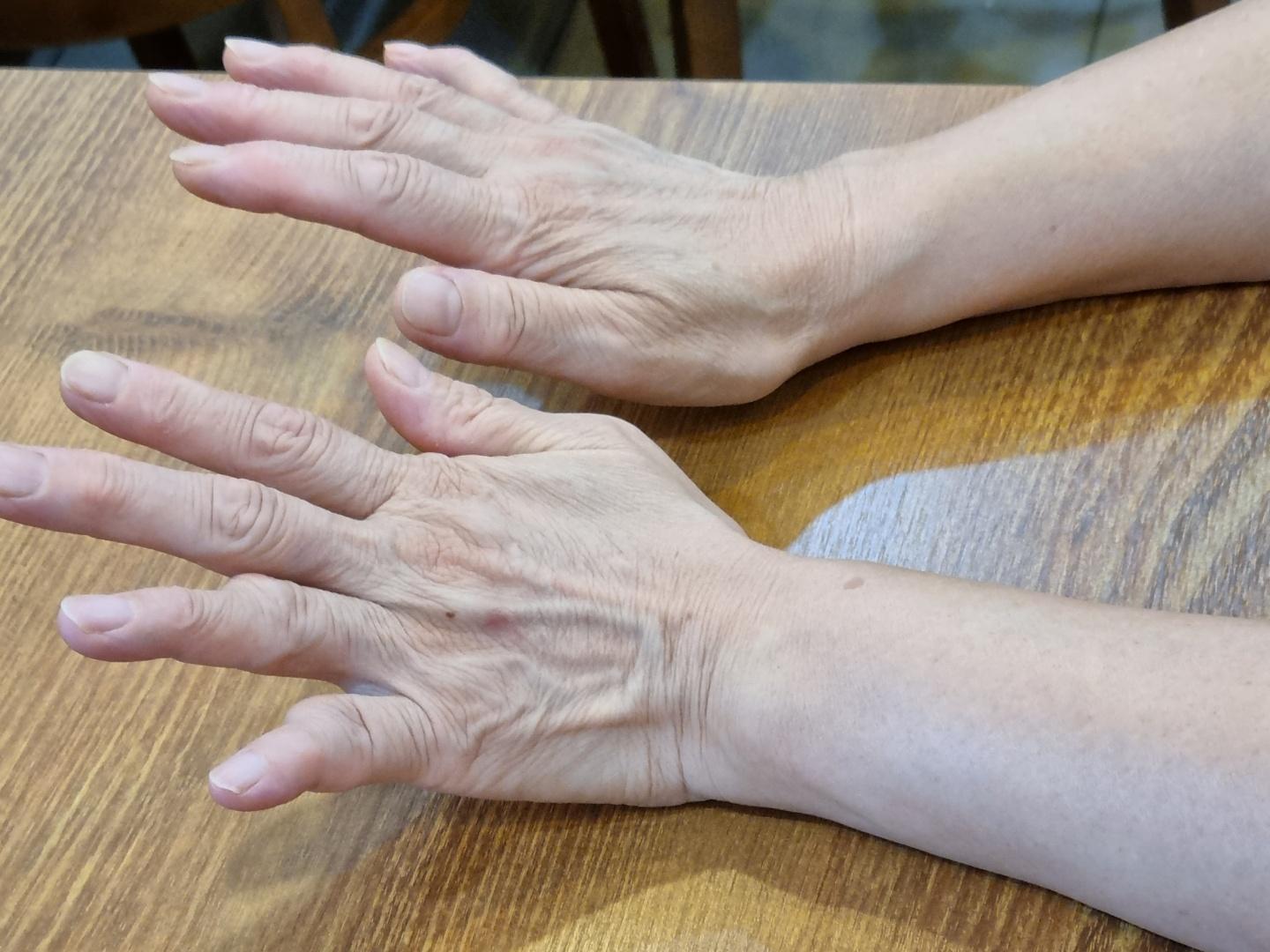 충남홍어회 홍어무친 사장님 손 사진이다. 수십년동안 홍어를 손질하고 홍어를 무친 사장님의 손이다. 수십년동안 해온 칼질로 인해 손이 일자로 펴지지 않는다. 충남 홍어회집의 세월이 묻어나는 손이다.