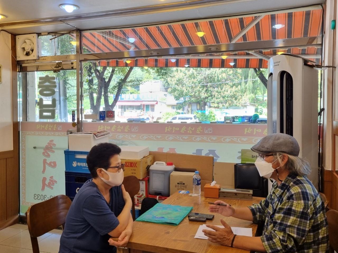 충남 홍어회 사장님 인터뷰 사진이다. 조개고개에서 장사를 시작하여 미추홀구로 오셨지만, 추후엔 다시 조개고개로 갈 생걱이다. 조개고개때부터 오신 손님들과 옛날이야기를 할 때 행복하다. 현재는 손님들 연령대가 다양하다.