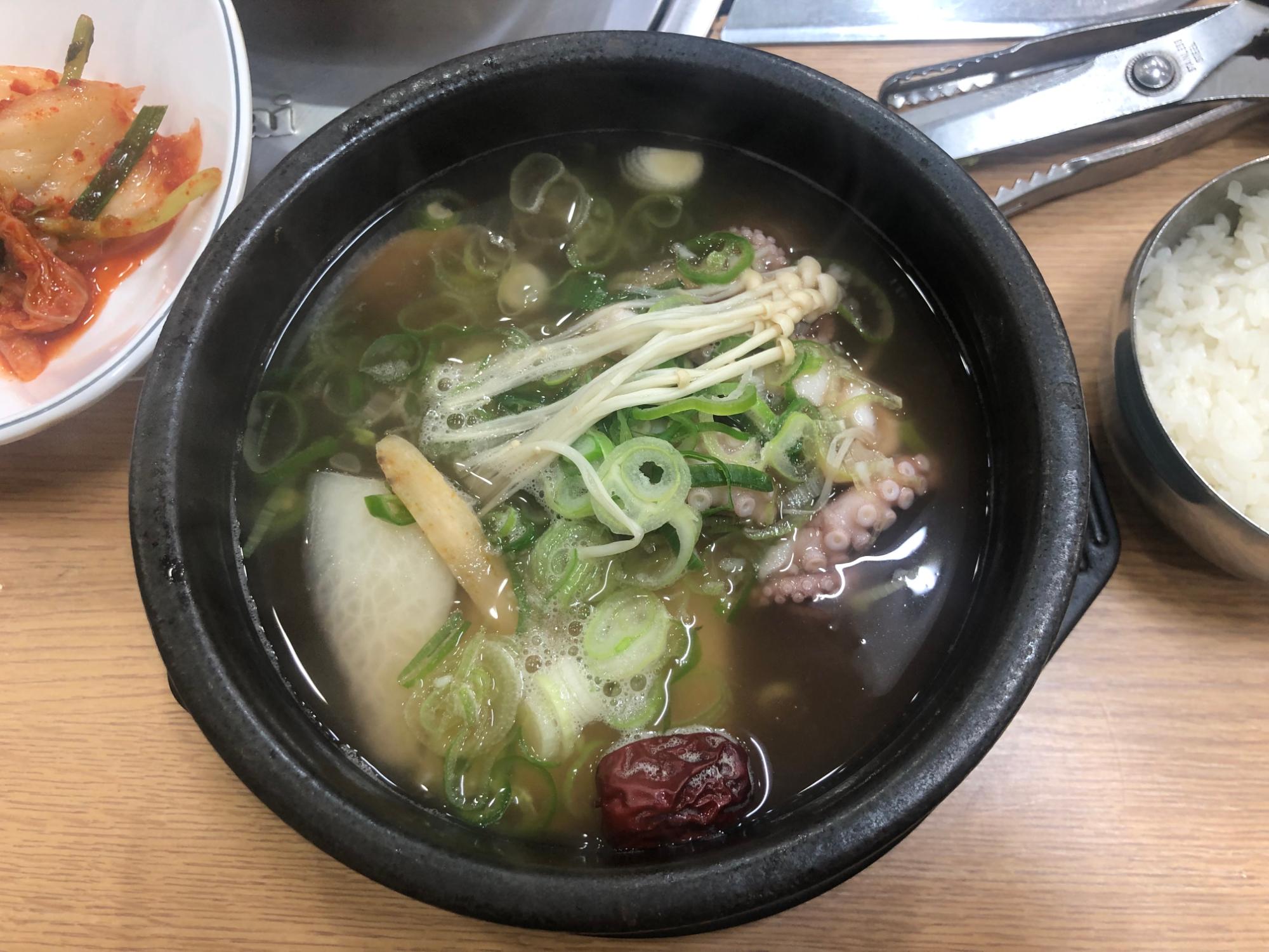 낙지마당 갈낙탕 사진이다. 갈비탕에 낙지가 들어간 갈낙탕은 낙지마당만의 새로운 메뉴이다. 깔끔하고 시원한 맛을 느낄 수 있는 음식이다.