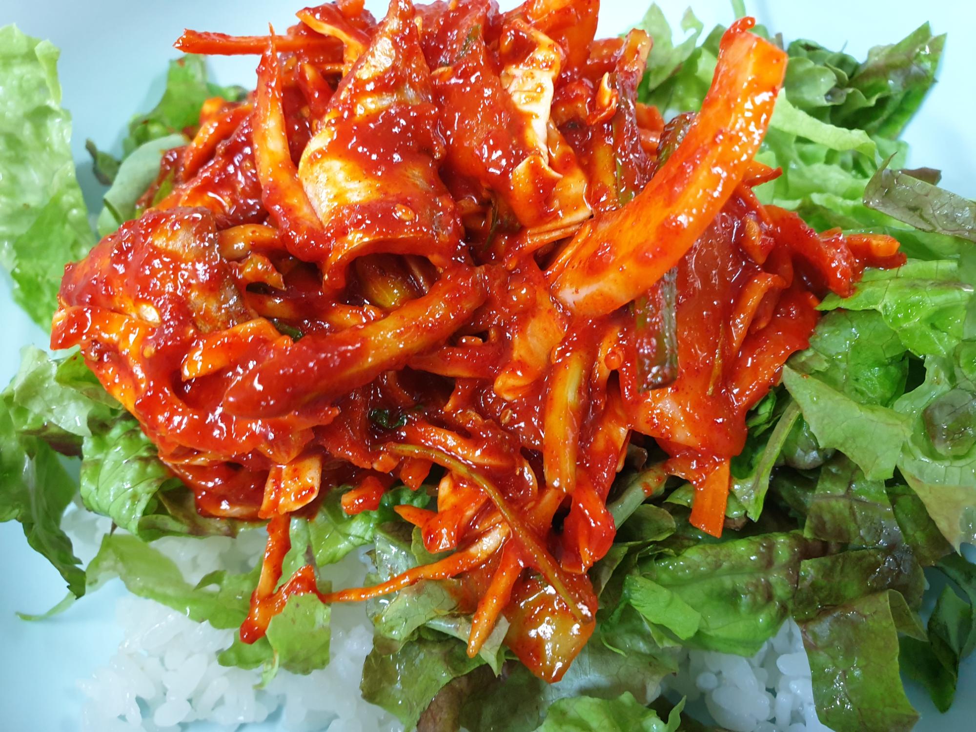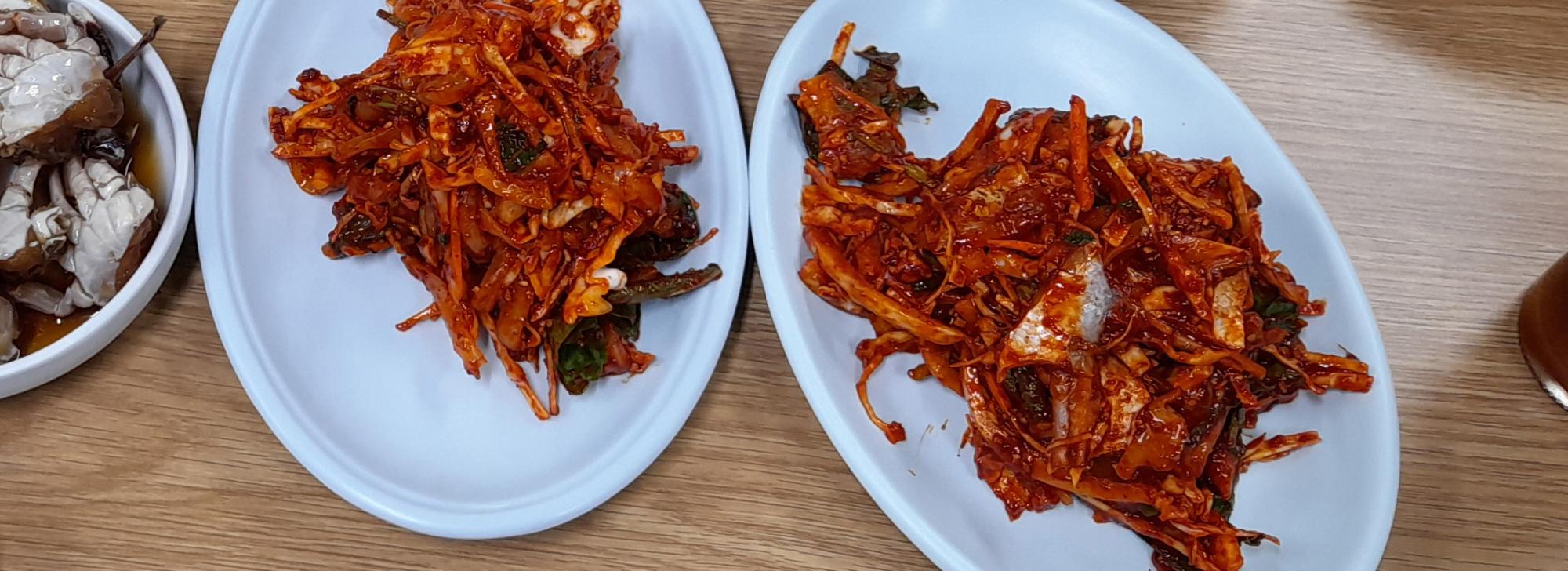 금산식당 밴댕이무침 사진이다. 밴댕이는 사시사철 잡히며, 채소는 시장에서 구입하며, 고춧가루와 참기름은 방앗간에서 구매해 사용하고 있다. 좋은재료를 사용하여 밴댕이 무침을 만들어 손님들에게 제공한다.