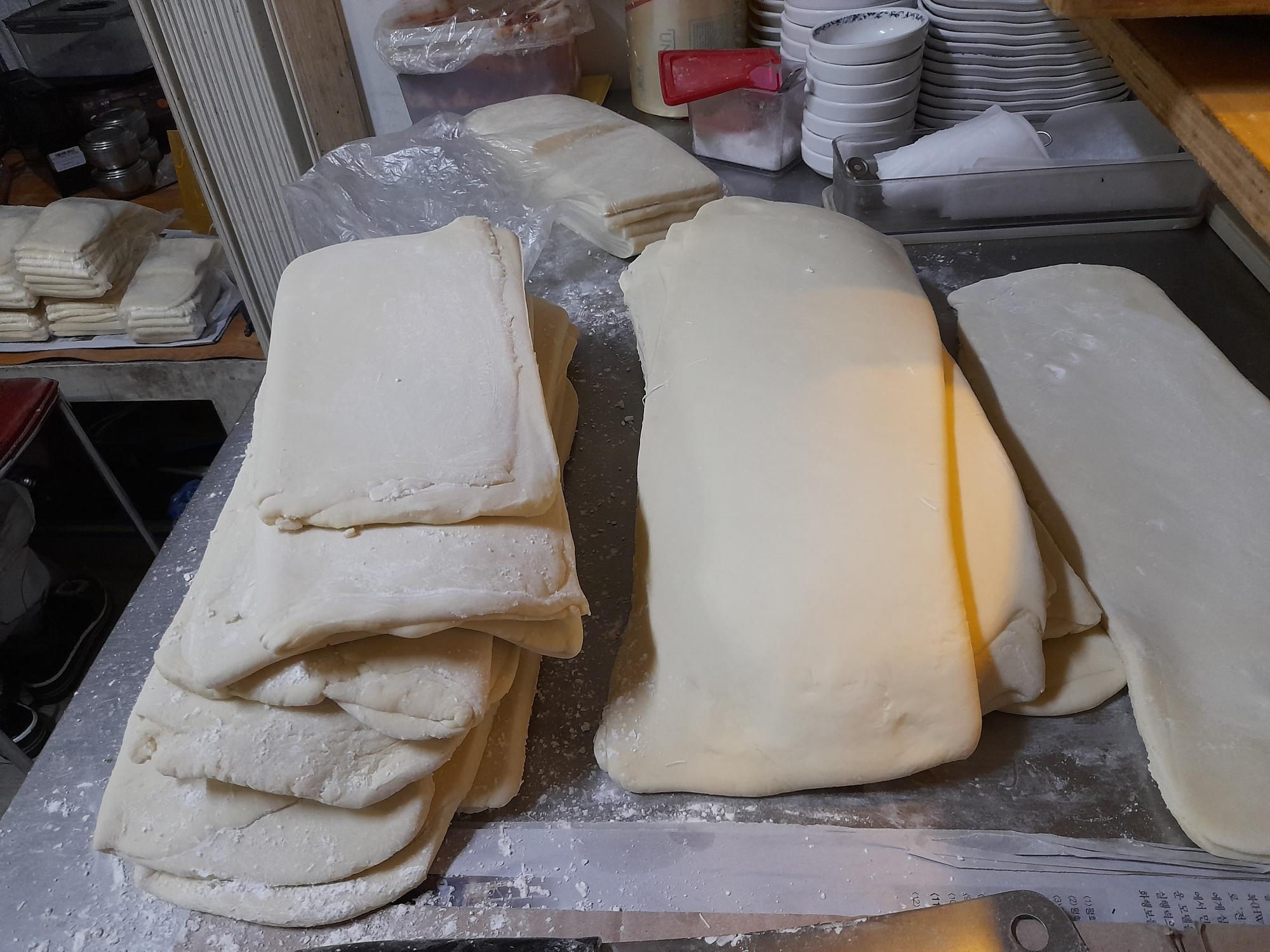 우동만100년 제면 전 국수 반죽 사진이다. 우동의 모든것을 직접 만드는 사장님은 반죽을 만들때 신경을 제일 많이써서 만들고 있다. 쫄깃하고 탱탱한 반죽을 만들기 위해 매번 신경쓰고 노력하며 만들고 있다.