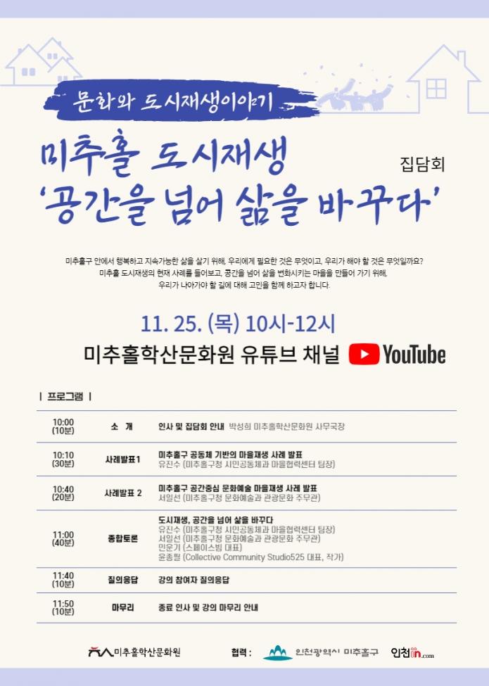 | 변경전 내용 | 2021 미추홀 도시재생_공간을 넘어 삶을 바꾸다_집담회 |
