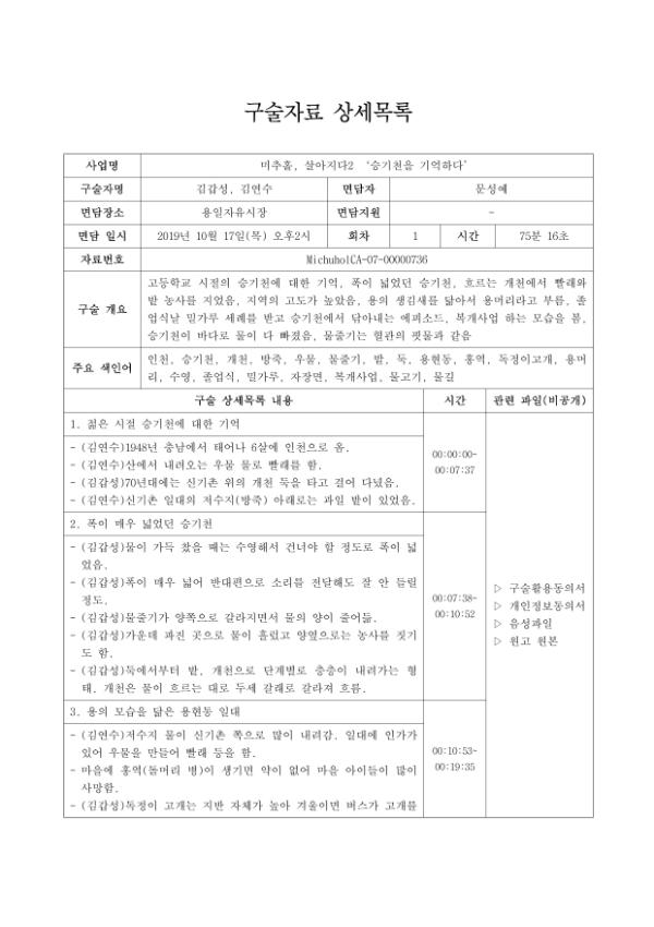 • 구 술 자 : 김갑성(1950년생) / 김연수(1946년생)