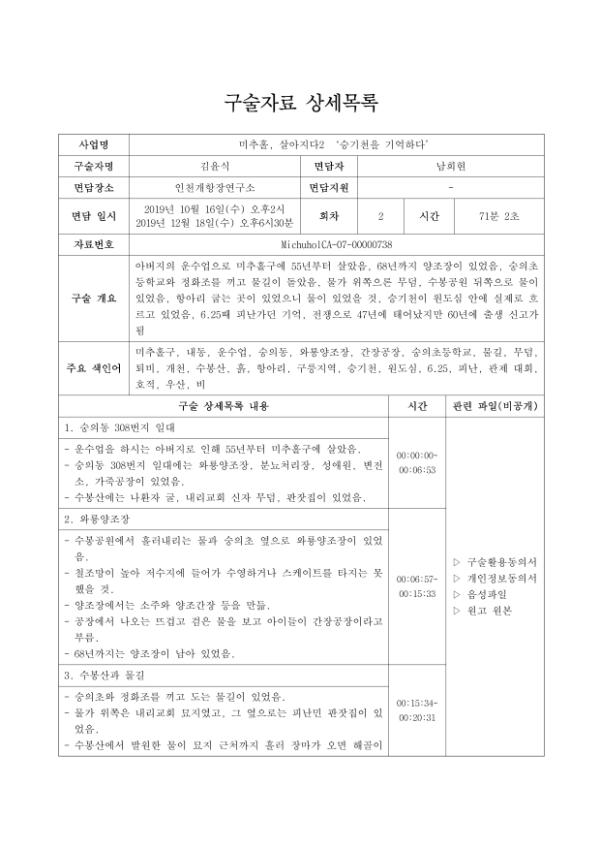 목 적 : 인천 도심을 관통하는 유일한 하천인 '승기천'의