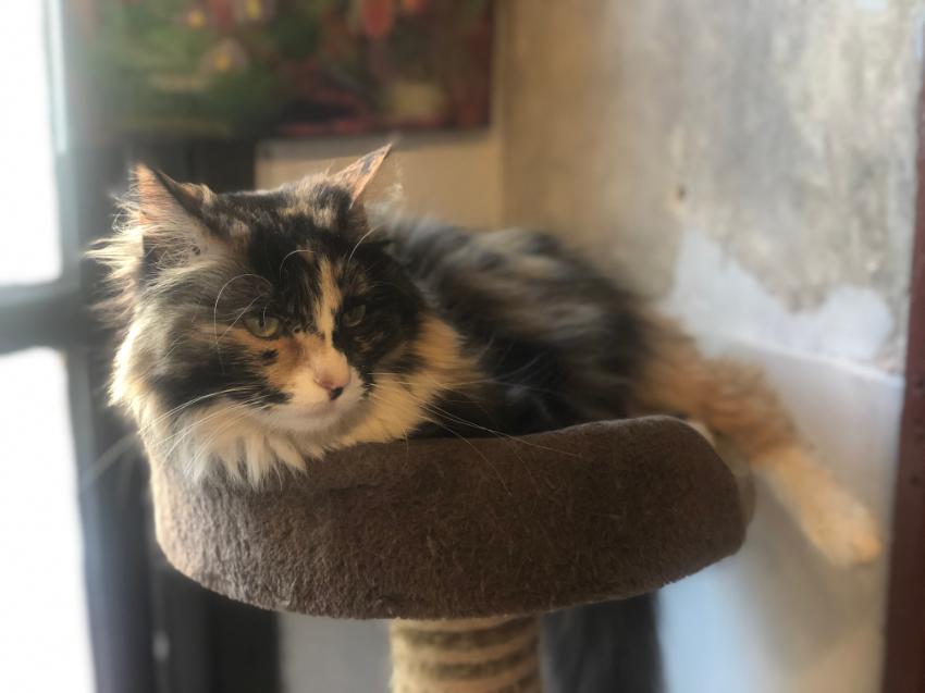 미술관 안에 들어가면 고양이 한 마리가 나와 맞아준다. 미술관에 들어서면 낯선 사람에게도 배를 보여주며 반갑게 맞아주고, 그림을 감상할때는 캣타워에 앉아 가만히 바라봐준다.