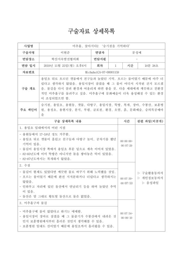 [(대표)구술자: 이현준, 20191125], [생산자: 문성예, 20191125]