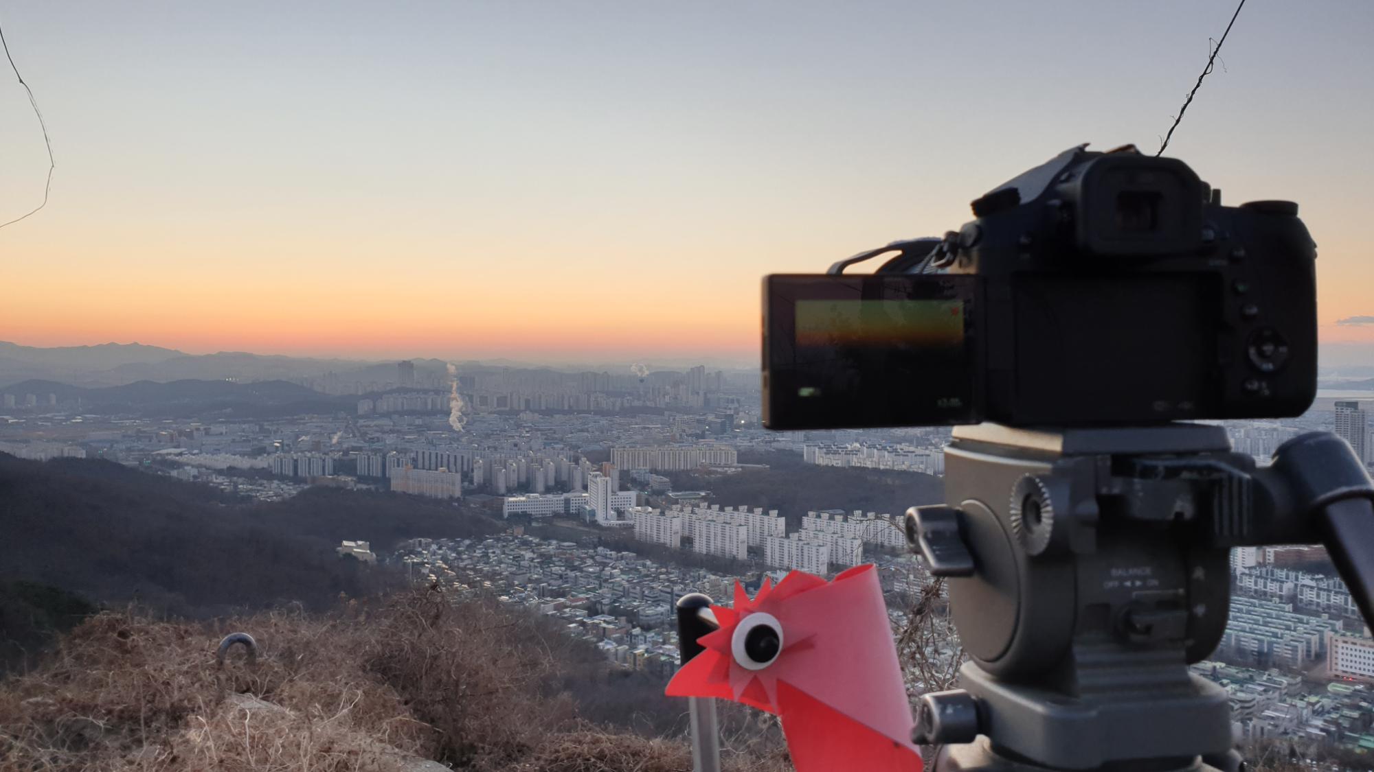 문학산 일출 촬영 날짜를 잡았는데 아침 기온이–16도 한파 특보가 발효되었다. 다행인 것은 같이 가는 지인이 차로 정상에 가는 허가를 받아 무거운 장비를 차로 정상까지 갈수 있었다. 패션은 눈만 보이게 하고 갔다. 촬영 준비중에 장갑을 벗고 하는데 손이 얼어붙는 줄 알았다. 차안에서 먹은 컵라면은 인생 라면으로 기억 된다. 당시 사진을 보니 춥다.