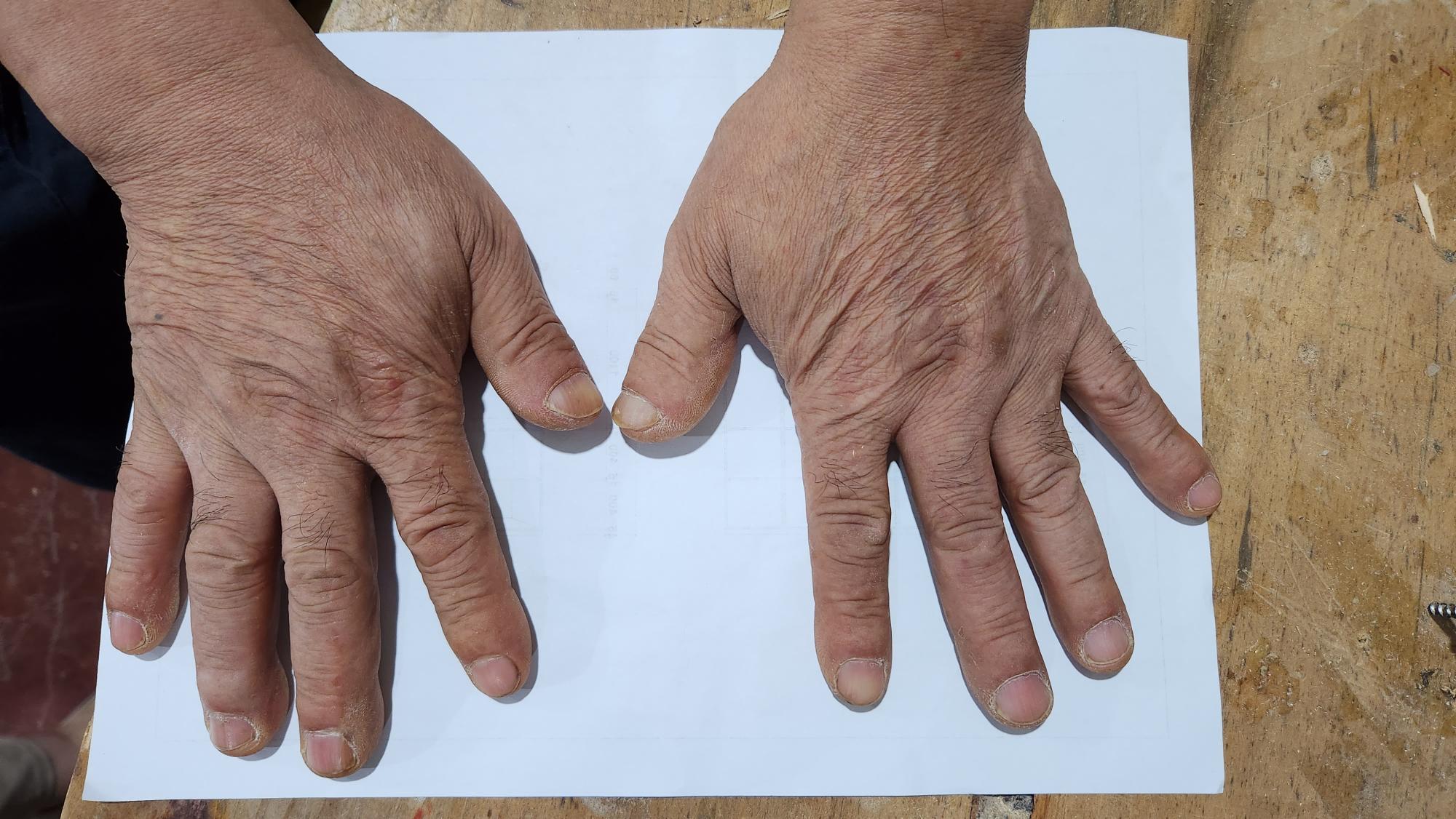 2022년 숭의목공예마을 기록을 위해 명진공예사 윤덕환 사장의 손을 촬영한 사진이다.