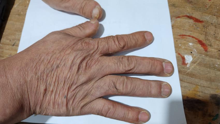2022년 숭의목공예마을 기록을 위해 명진공예 사장님의 손을 촬영한 사진이다.