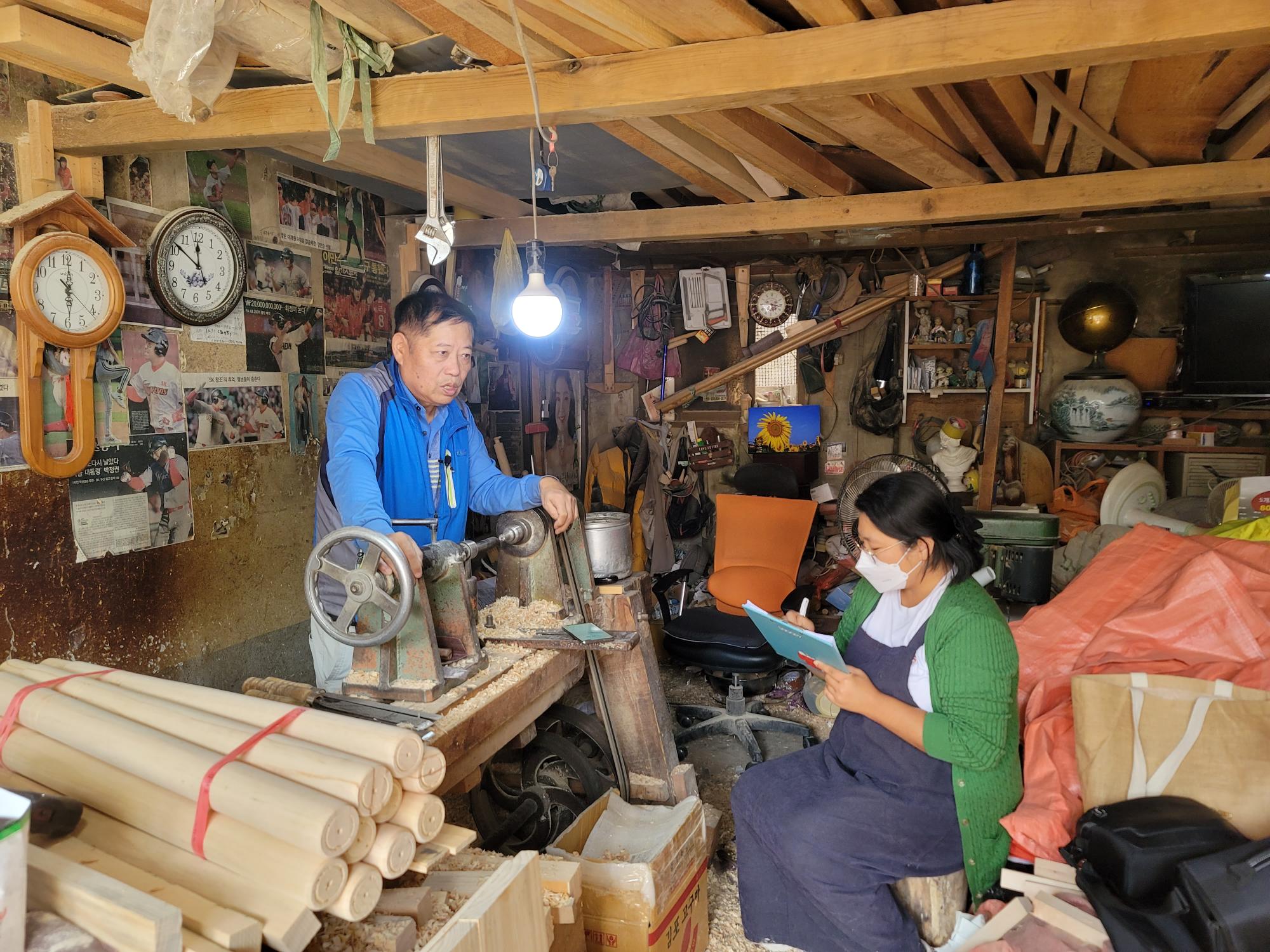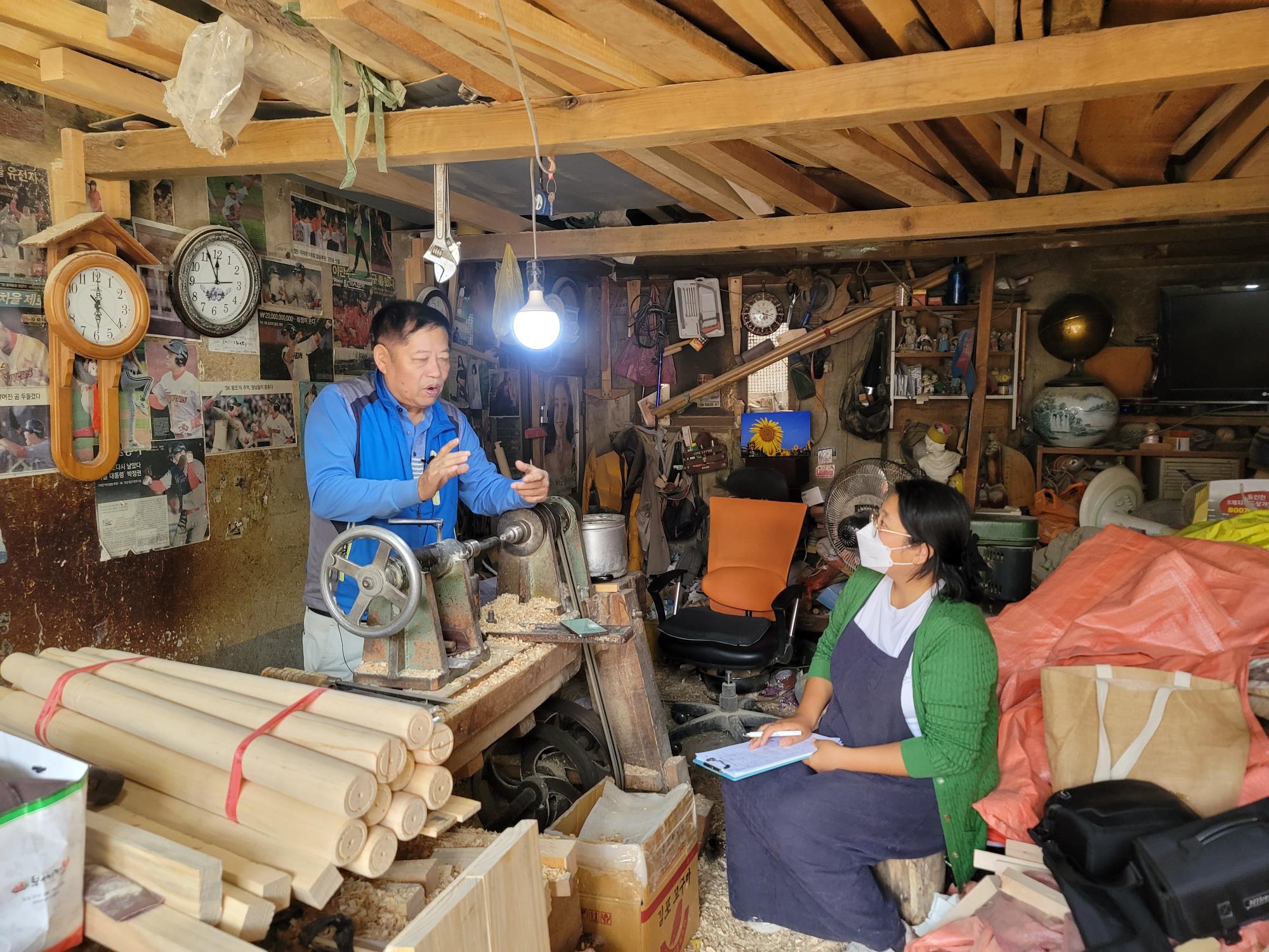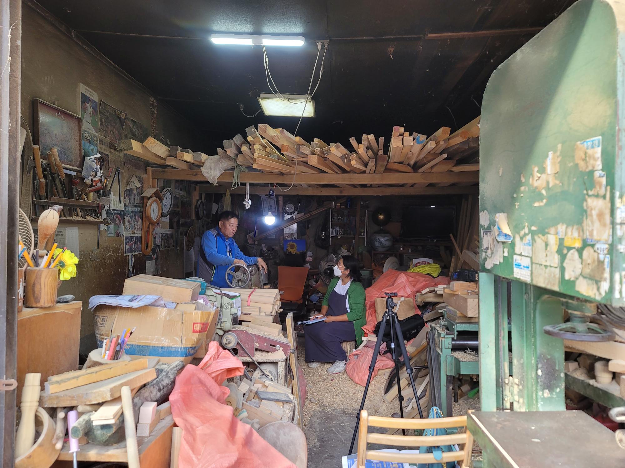 | 변경전 내용 | 2022년 숭의목공예마을 기록을 위해 미추홀시민기록단 조연희님이 대우공예 사장님을 인터뷰하는 모습이다. 목공 직업을 주제로 사장님의 삶을 함께 기록하였다. • 촬영장소 : 대우공예(미추홀구 숭의동) |