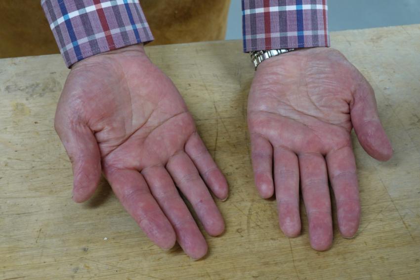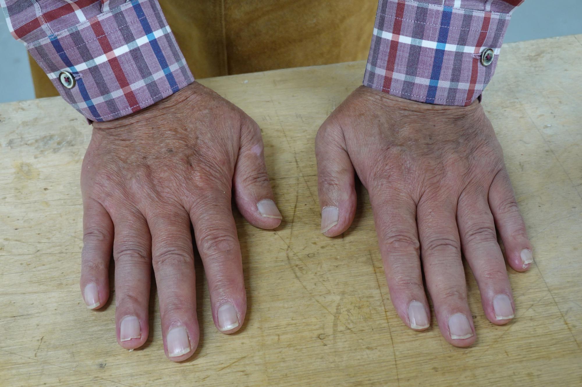 2022년 숭의목공예마을 기록을 위해 서울목공예 변경인 사장의 손을 촬영한 사진이다.