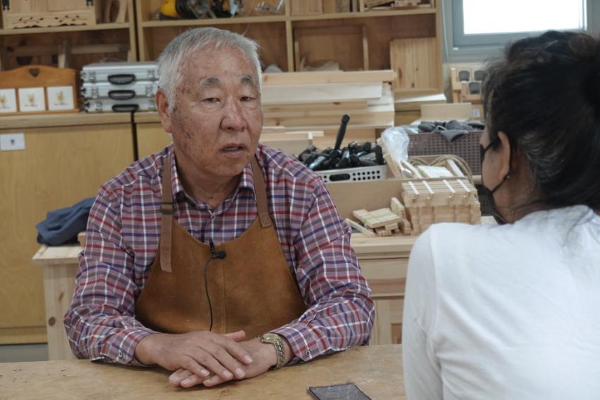 | 변경전 내용 | 2022년 숭의목공예마을 기록을 위해 미추홀시민기록단 이혜숙님이 서울목공예 사장님을 인터뷰하는 모습이다. 목공 직업을 주제로 사장님의 삶을 함께 기록하였다. • 촬영장소 : 숭의목공예센터(미추홀구 숭의동) |