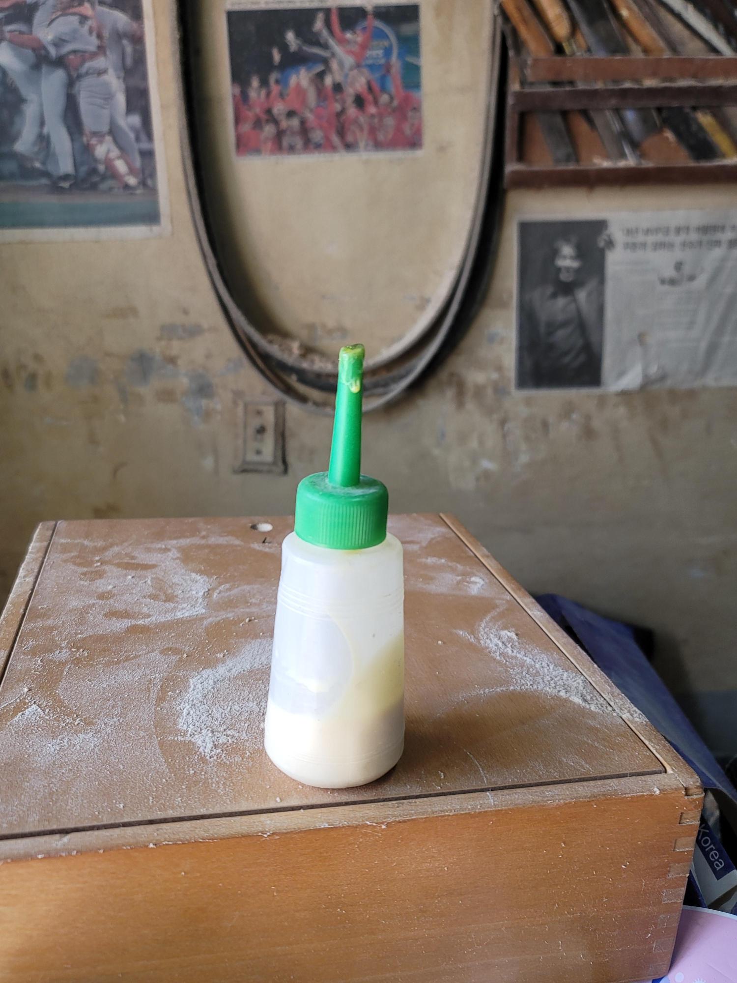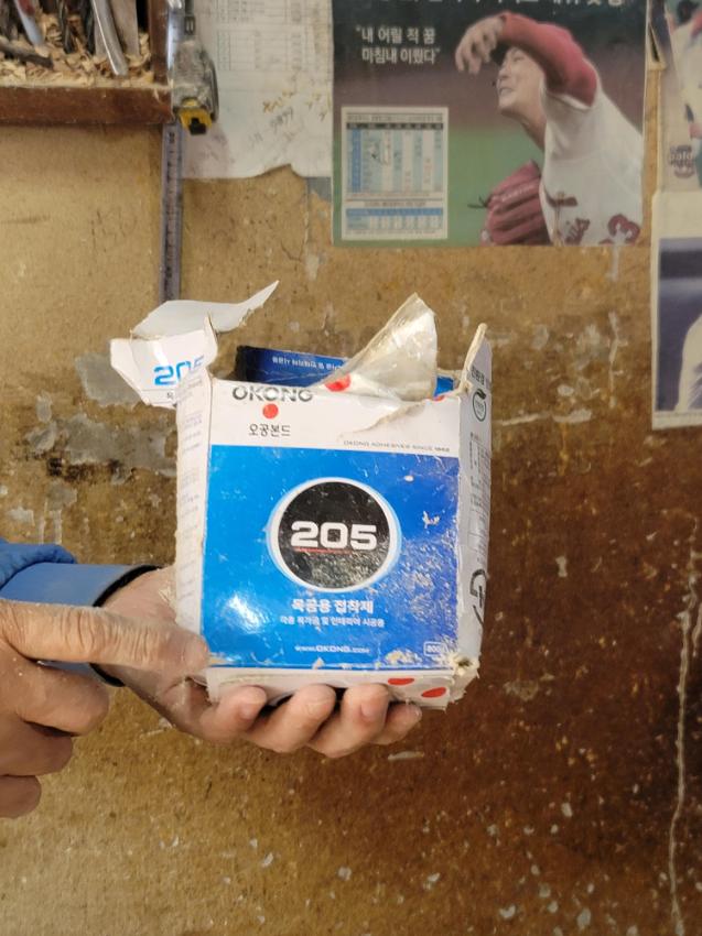 2022년 숭의목공예마을 기록을 위해 대우공예에 방문하였을 때 촬영한 작업물품(접착제) 사진이다.