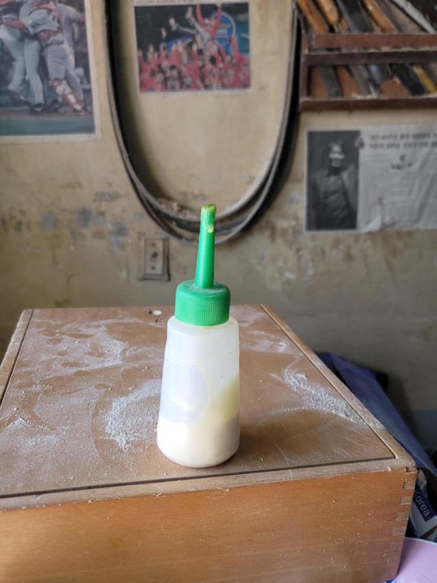 2022년 숭의목공예마을 기록을 위해 대우공예 원철성 사장이 사용하는 작업물품(접착제)을 촬영한 사진이다.