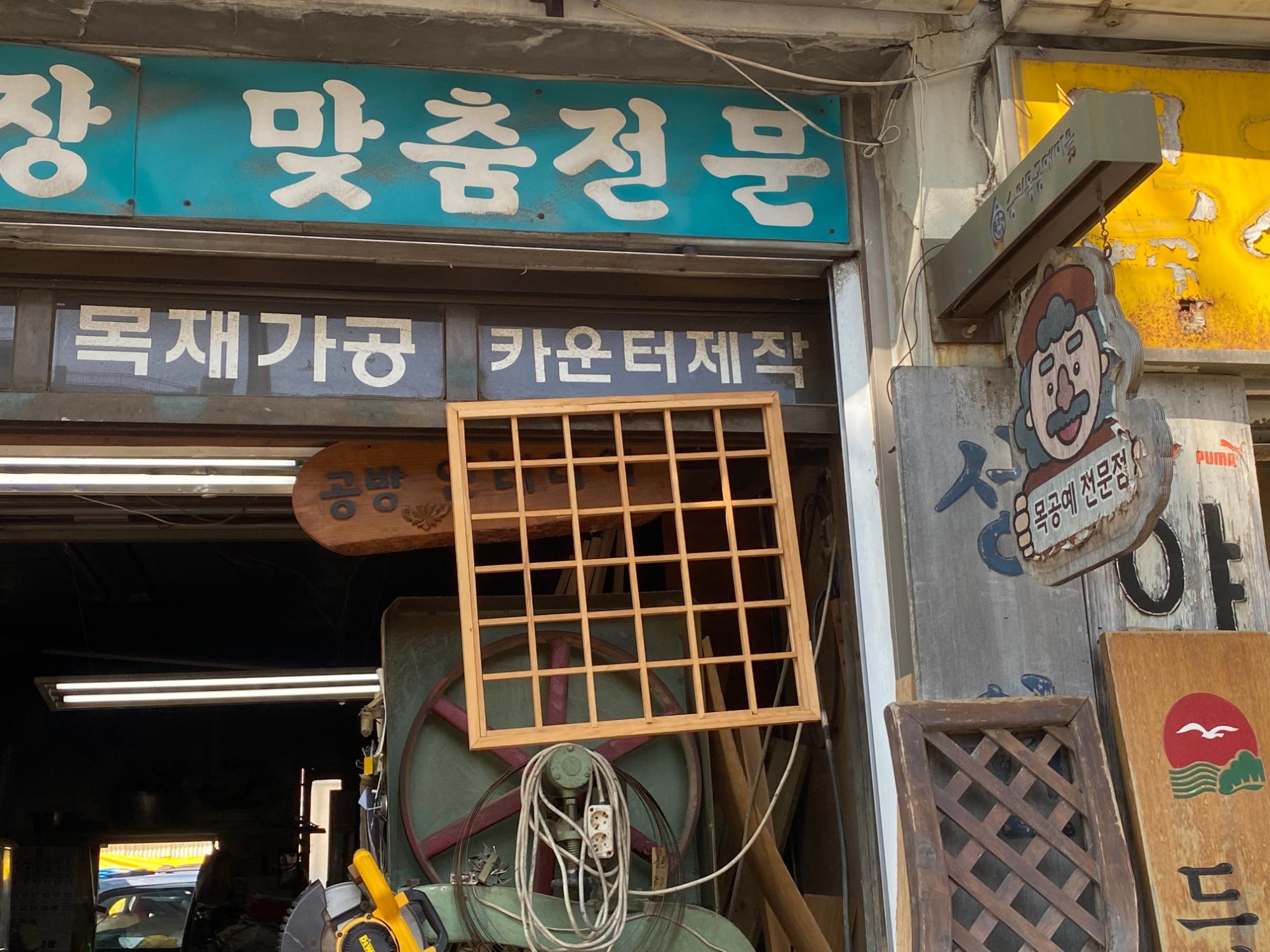2022년 숭의목공예마을 기록을 위해 성원인테리어에 방문하였을 때 촬영한 작업물 사진이다.