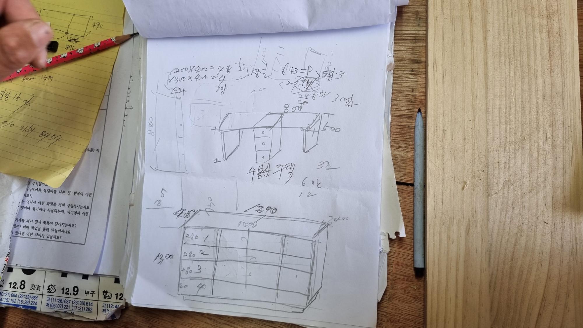 2022년 숭의목공예마을 기록을 위해 성원인테리어에 방문하였을 때 촬영한 작업노트 사진이다.