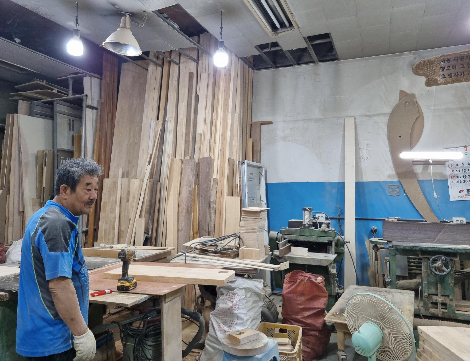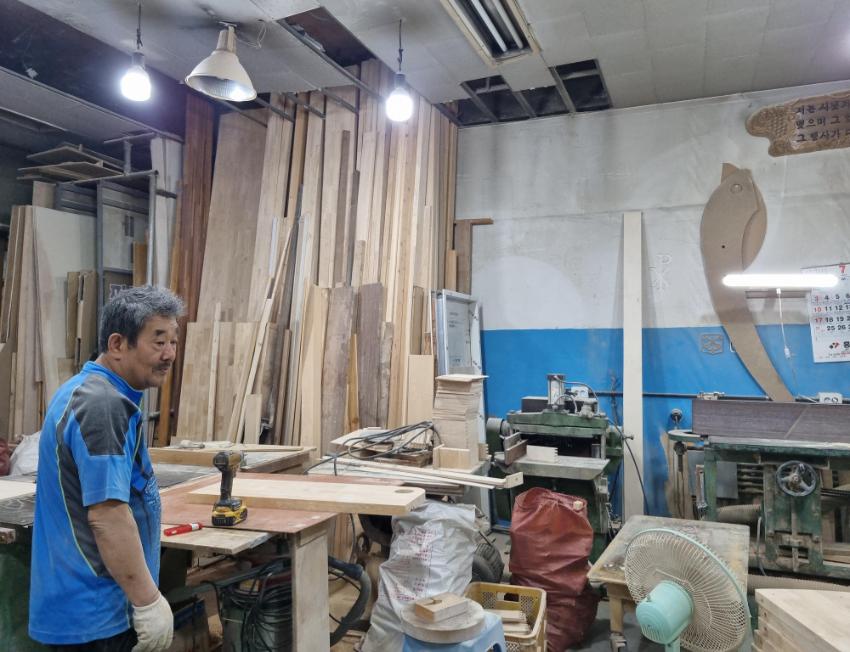2022년 숭의목공예마을 기록을 위한 인터뷰 날짜를 잡기 위해 명진공예사 사장님을 찾아 갔을 때 촬영한 사진이다.