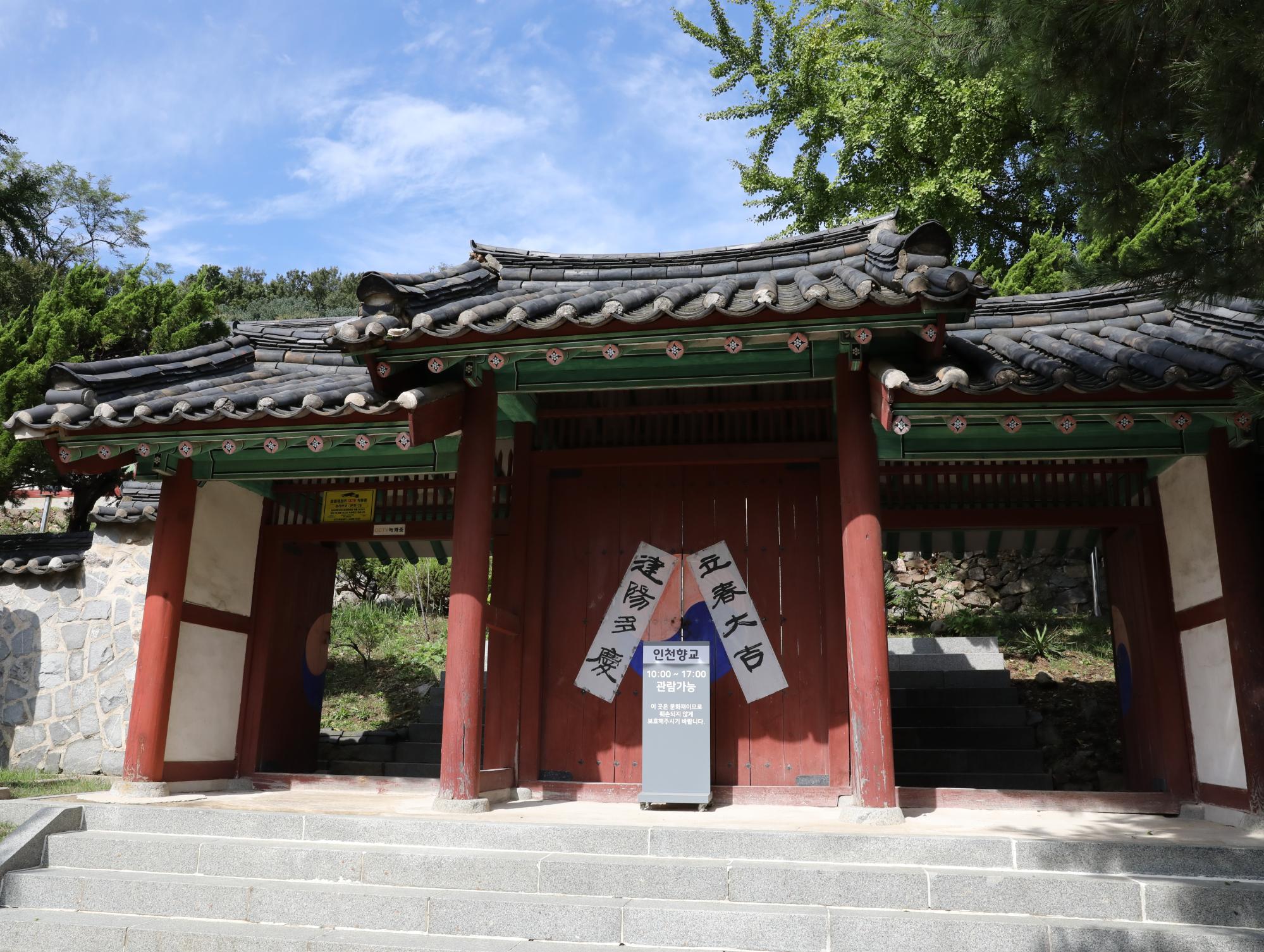 인천광역시 미추홀구 문학동에 위치한 인천향교의 외삼문 사진이다.