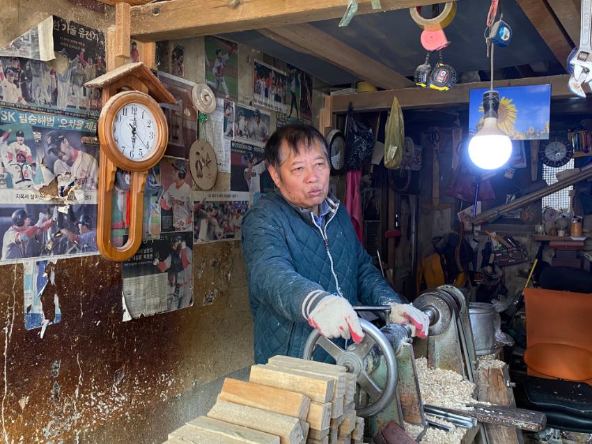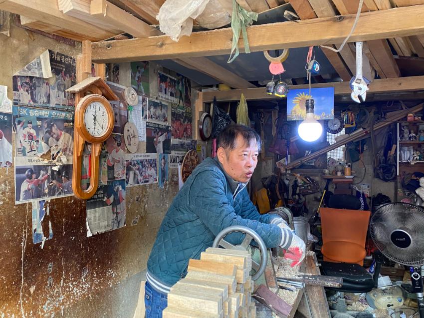 2022년 숭의목공예마을 기록을 위해 대우공예 원철성 사장을 촬영한 사진이다.
