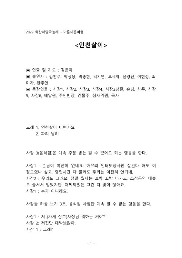 | 검색어 | 미추홀학산문화원,시민창작예술,마당예술동아리,아름다운비행,학산,음악극 |
