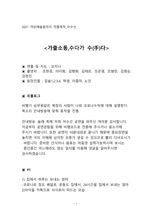 | 작품명 | 가출소동,수다가 수(手)다 |