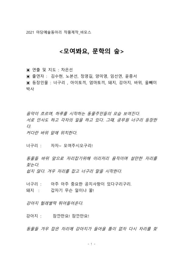 | 작품명 | 모여봐요, 문학의 숲 |