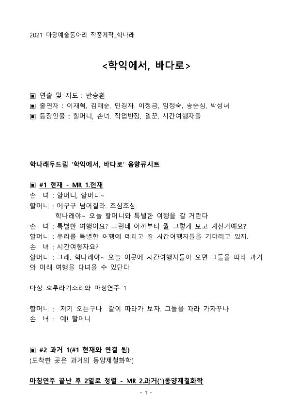 | 출처분류 | 미추홀학산문화원 사업 학산마당극놀래 2022 학산마당극놀래 |
