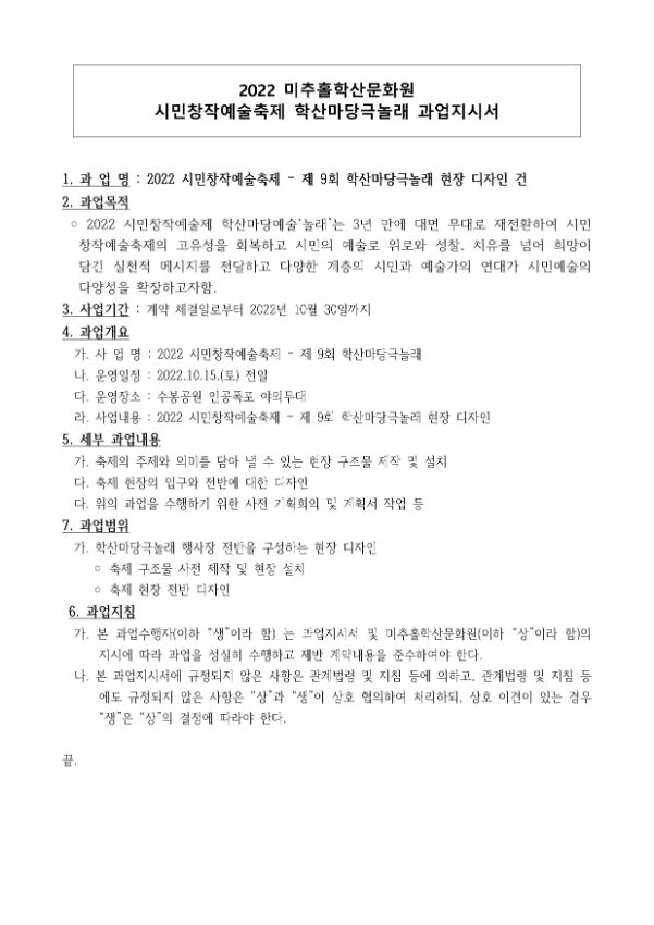 학산마당극놀래 운영 현장 무대 및 설치물 디자인 과업 안내