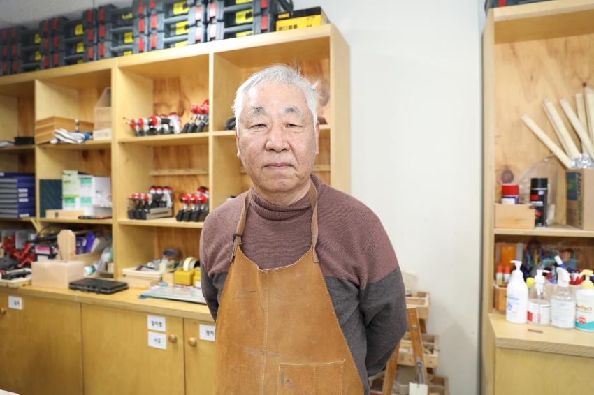 2022년 숭의목공예마을 기록을 위해 서울목공예 변경인 사장을 촬영한 사진이다.