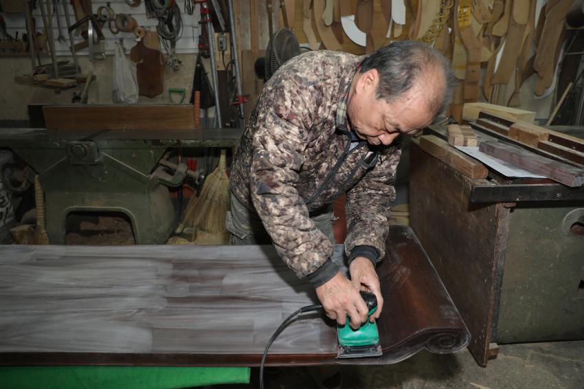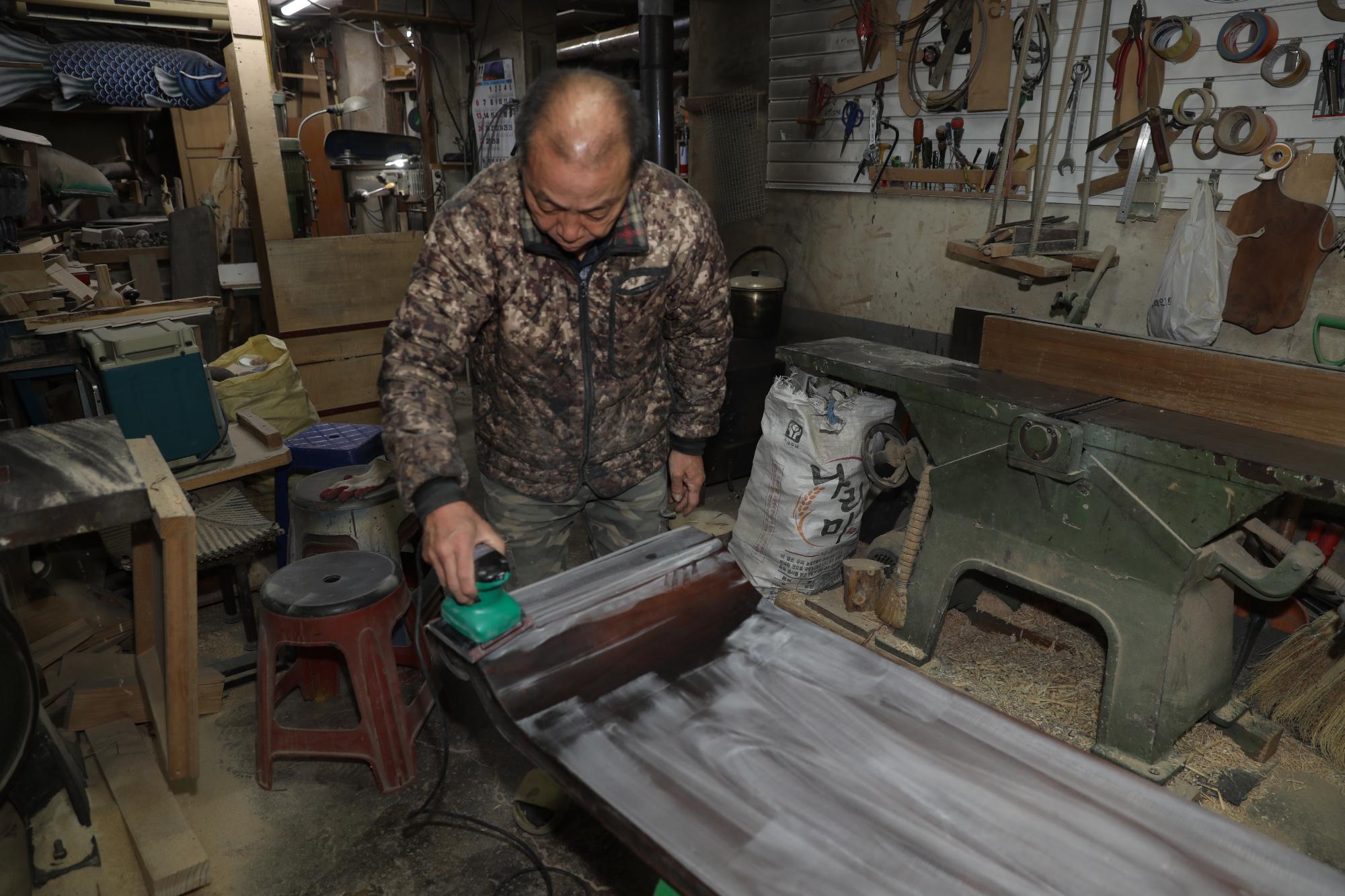 2022년 숭의목공예마을 기록을 위해 미추홀공예사 김인규 사장이 작업하는 모습을 촬영한 사진이다.