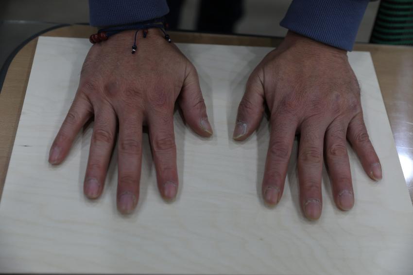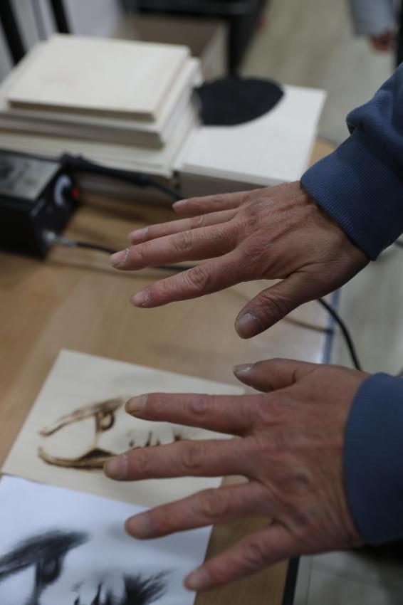 2022년 숭의목공예마을 기록을 위해 준아트 이현준 사장의 손을 촬영한 사진이다.