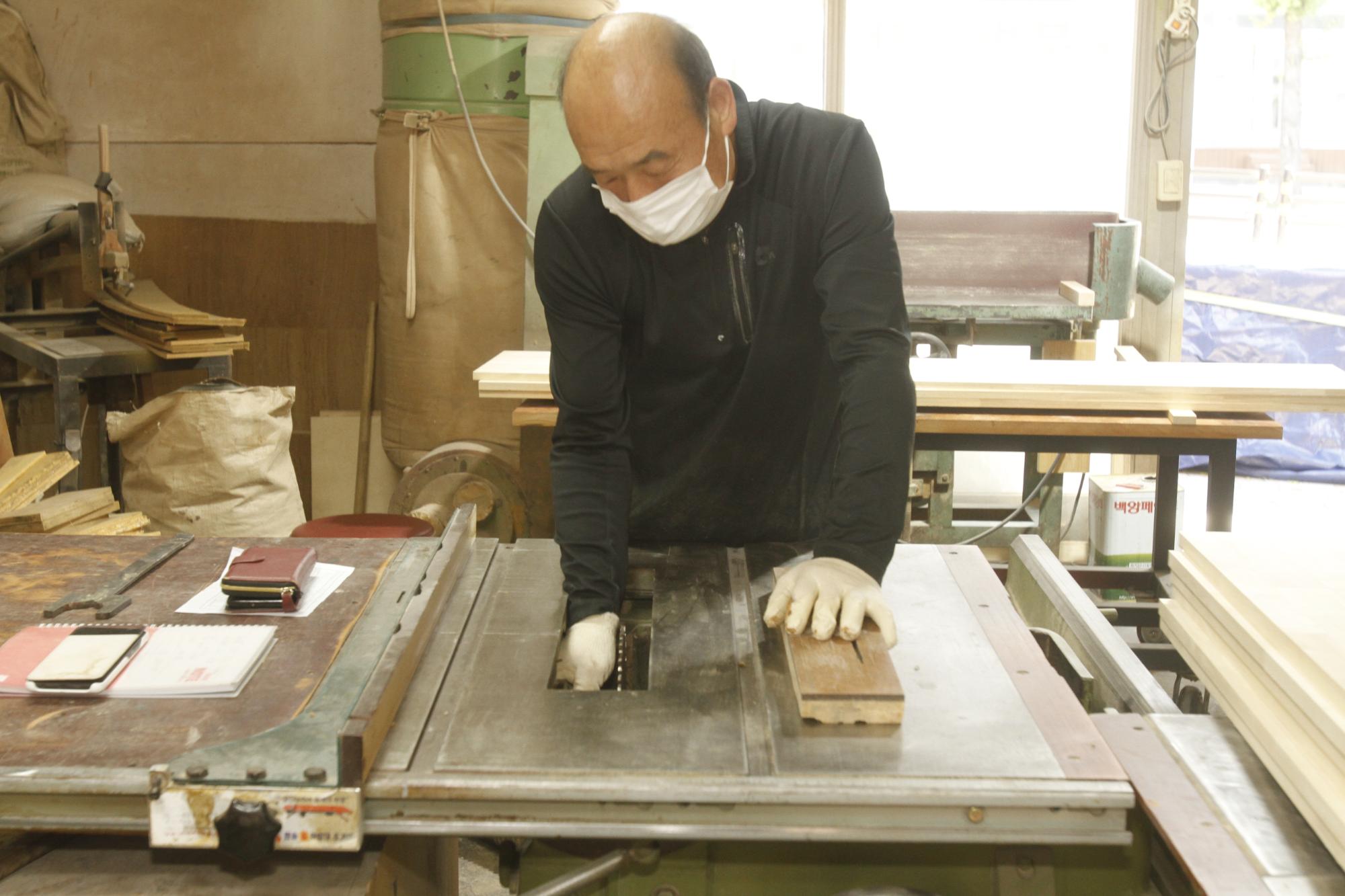 2022년 숭의목공예마을 기록을 위해 모던목공방 조한일 사장님이 작업하시는 모습을 촬영한 사진이다.