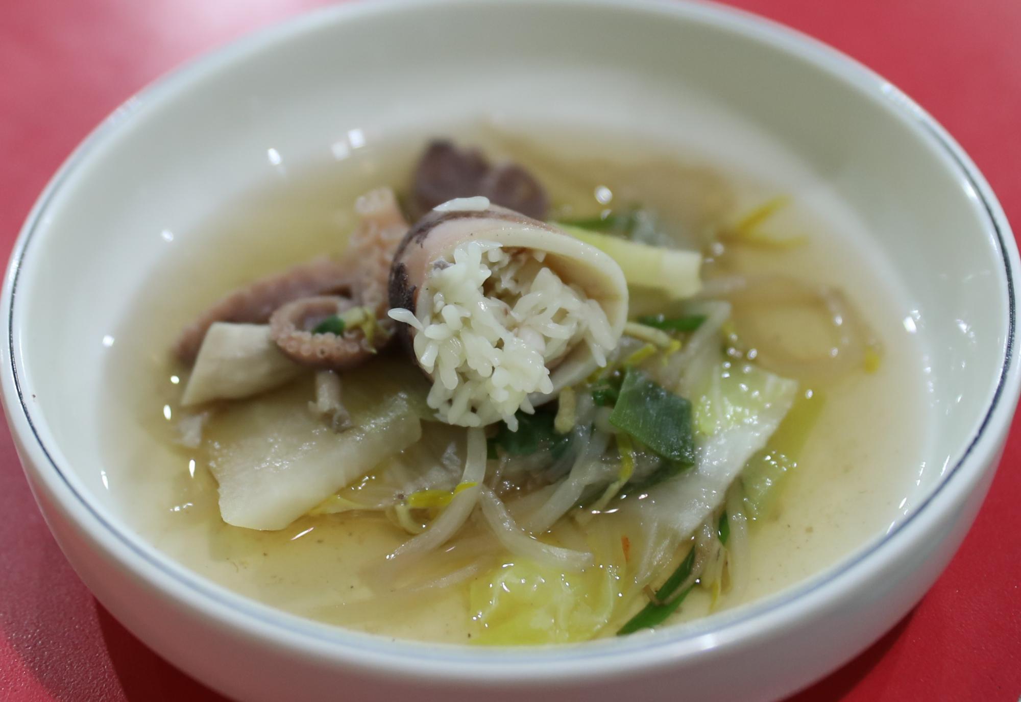 철길퓨전포차의 앞접시에 담아낸 쭈꾸미 샤브샤브를 촬영한 사진이다.