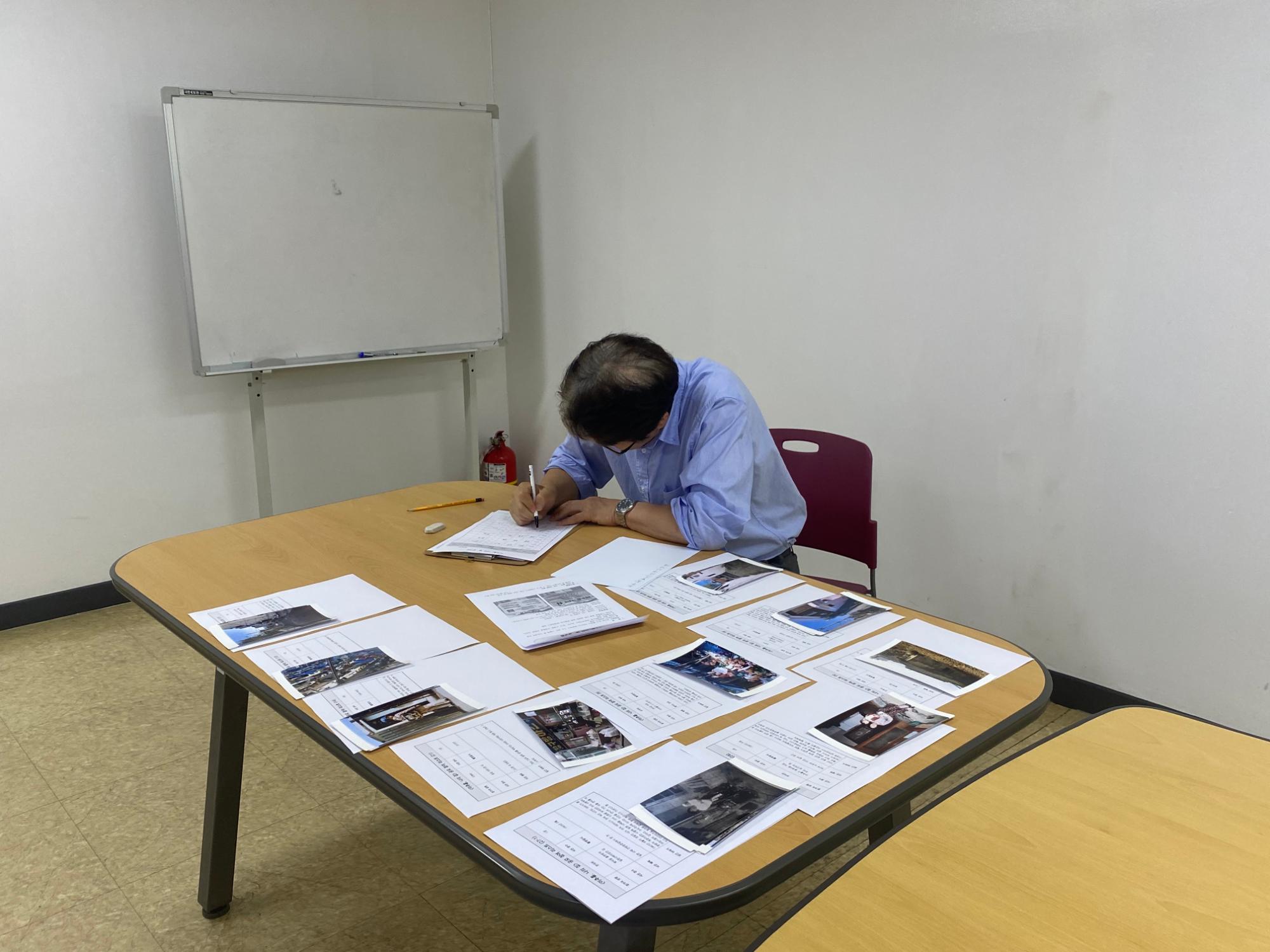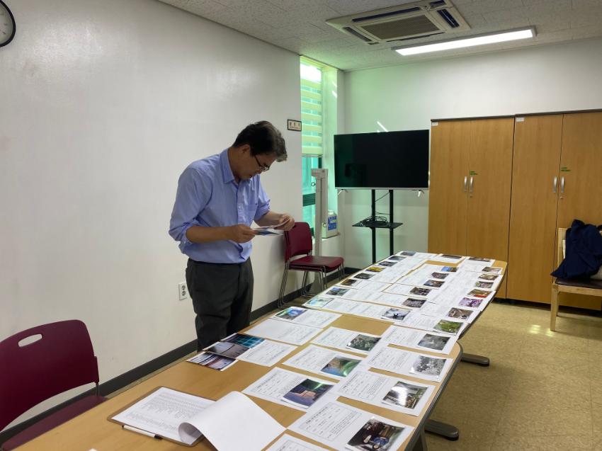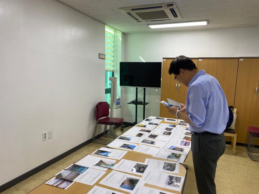 지역자원 기록 사진·이야기 공모 '미추홀, 나의 집'의 우수참여작을 뽑기위해 심사하는 사진이다.