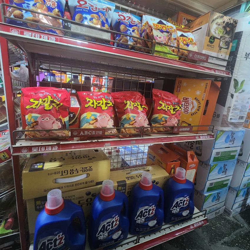 경북슈퍼 내 롯데제과에서 제공한 제품 진열대