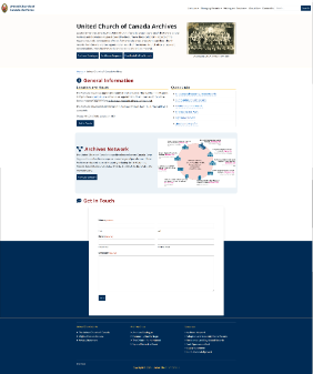아카이브 방문하기 온타리오 주 토론토에 건물이 위치한 캐나다 연합 교회 기록 보관소는 총회 기록 보관소와 온타리오 지역 협의회 기록 보관소로 구성되어 있습니다. 기록 보관소는 지역 협의회, 신앙 공동체, 전 연회, 노회, 온타리오 지역 교회 기록의 기록과 총회 사무실, 선행 교단, 교회 간 자료, 개인 및 사적 자료의 조직 기록을 수집합니다. 1952년에 공식 출범한 캐나다 온타리오 지역 협의회 기록 보관소로 장로교, 감리교, 복음주의 등 여러 교단과 관련된 역사를 수집, 보존하여 제공합니다.