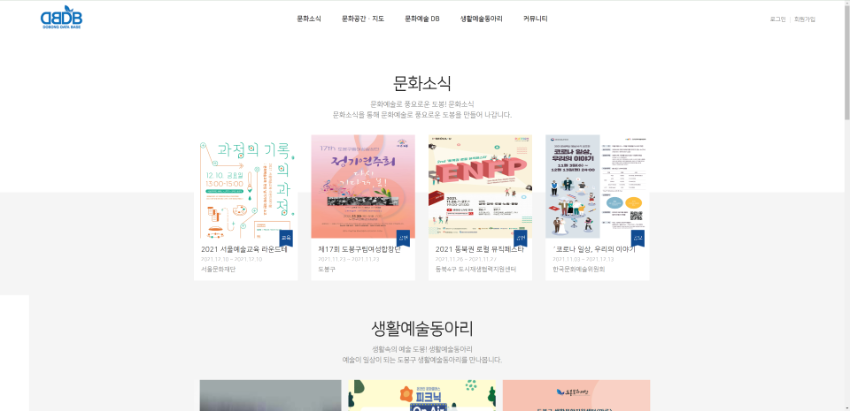 🔸 도봉 DB | 도봉문화재단 도봉DB는 도봉문화재단에서 관리하고 있는 도봉구 문화예술 플랫폼입니다. 도봉구 내의 문화예술 인물, 단체, 문화공간, 생활예술동아리에 대한 정보를 제공하고 있습니다.