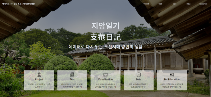 🔸 지암일기: 데이터로 다시 읽는 조선시대 양반의 생활 | 지암일기 디지털 인문학 연구 프로젝트팀 이 사이트는 조선시대 양반의 생활을 풍부하게 담고 있는 윤이후의 『지암일기』를 해독 번역한 내용을 디지털 데이터로 변환해 해석하고 편찬하는 새로운 연구를 시도하였습니다. 아날로그 미디어인 고문헌 자료의 내용을 디지털 미디어로 옮겨내는 과정을 통해, 디지털 데이터 기반의 역사학 연구 방법론의 실제에 다가서고 향후 디지털 환경에서 인문학 연구를 어떻게 수행할 것인지에 대한 분명한 로드맵을 확보하고자 하였습니다. 또한 이 과정에서 현재까지 발굴된 다량의 조선시대 일기와 고문서 등 생활사 자료를 디지털 환경에서 효과적으로 정리하고 분석할 수 있는 표준적인 디지털 인문학 연구 모델이 무엇인지에 대한 구체적 탐색을 전개하였습니다. 이와 같은 접근은 과거 인간의 삶을 여러 각도에서 심층적으로 들여다보고 그와 얽힌 정보들을 복합적 연계망을 통해 탐색하는 것을 가능하게 함으로써, 고전 자료가 디지털 환경에서 현대적으로 재매개화(remediation)될 수 있는 가능성을 열고 그로부터 새로운 차원의 인문학 연구의 장을 마련하는 데 기여하는 바가 있을 것입니다.