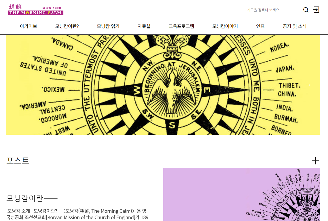 "1890년부터 발간된 대한성공회 선교지 <朝鮮, The Morning Calm>을 오늘에 되살려, 많은 사람이 편리하게 접근하여 배움을 얻고 영감을 받으며 이를 자양분으로 삼아 신앙심을 고취하고 문화의 꽃을 피우기를 희망합니다.