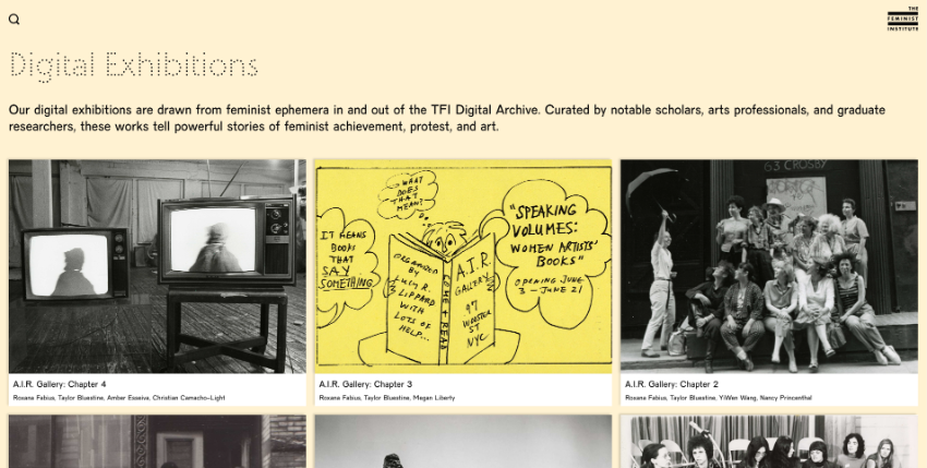 "Feminist Institute(TFI)는 대중이 접근할 수 있도록 아카이브 자료를 보존하고 디지털화하여 문화에 대한 페미니스트의 기여를 기록하고 기념합니다. TFI는 더 완전한 진실을 반영하기 위해 문화 기록을 채워 정보 활동주의와 성평등을 촉진합니다.