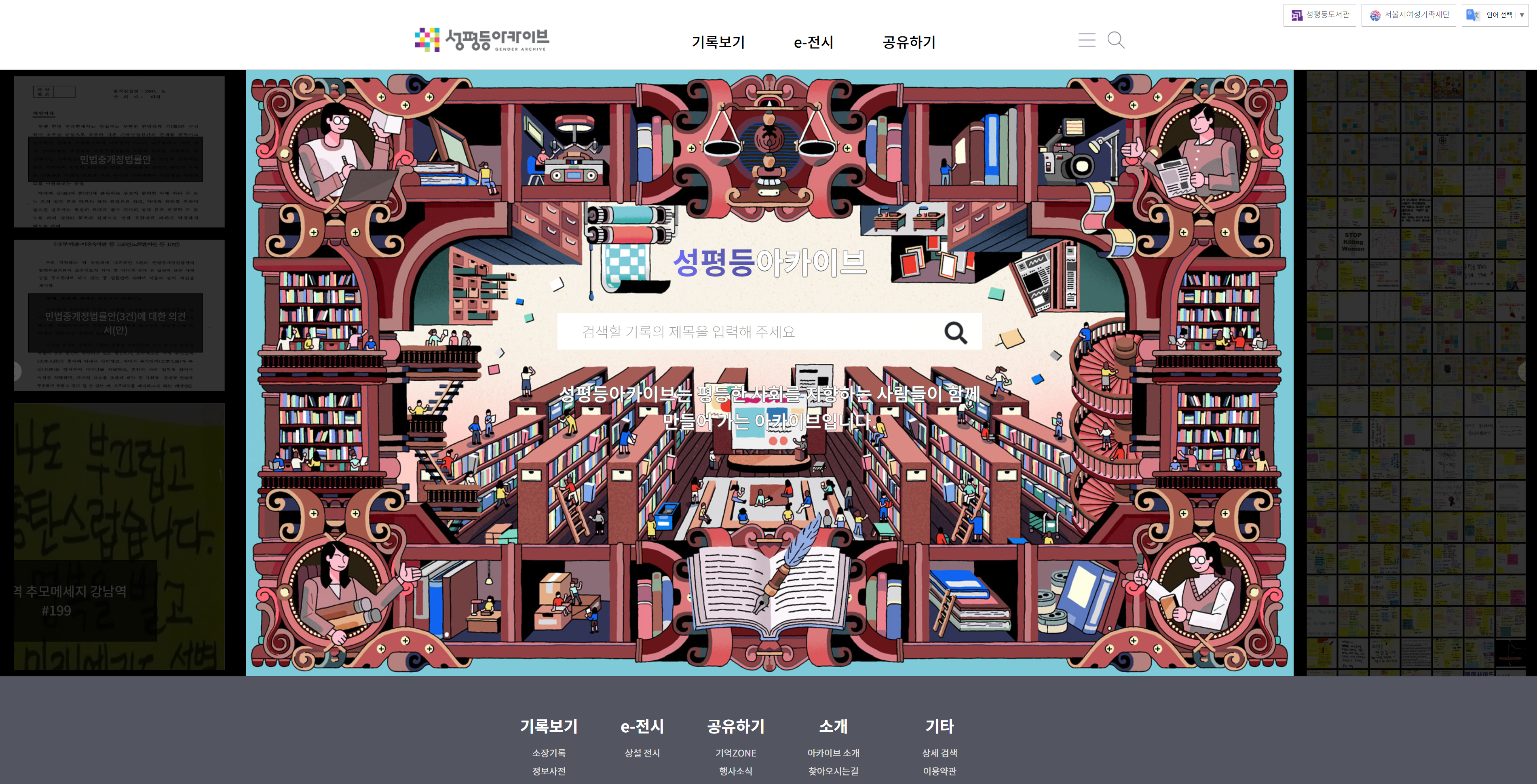 성평등아카이브는 다양한 형태의 성평등 기록을 시민들이 보다 친근하게 만나고 쉽게 활용하기를 바랍니다. 성평등 관점에서 과거를 재해석하고 시민들이 기증한 기록과 자료를 재구성하여 전시로 선보입니다. 누구나 참여하여 성평등 활동을 남길 수 있습니다."