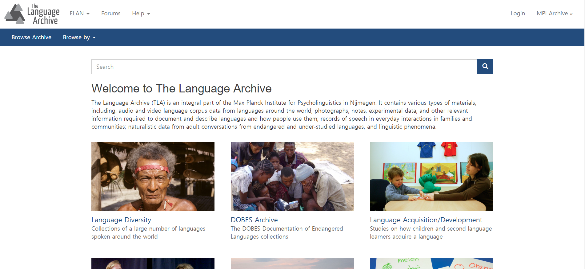"The Language Archive(언어 아카이브)는 네덜란드 Nijmegen에 위치한 막스 플랑크 심리언어학 연구소의 부속기관입니다.