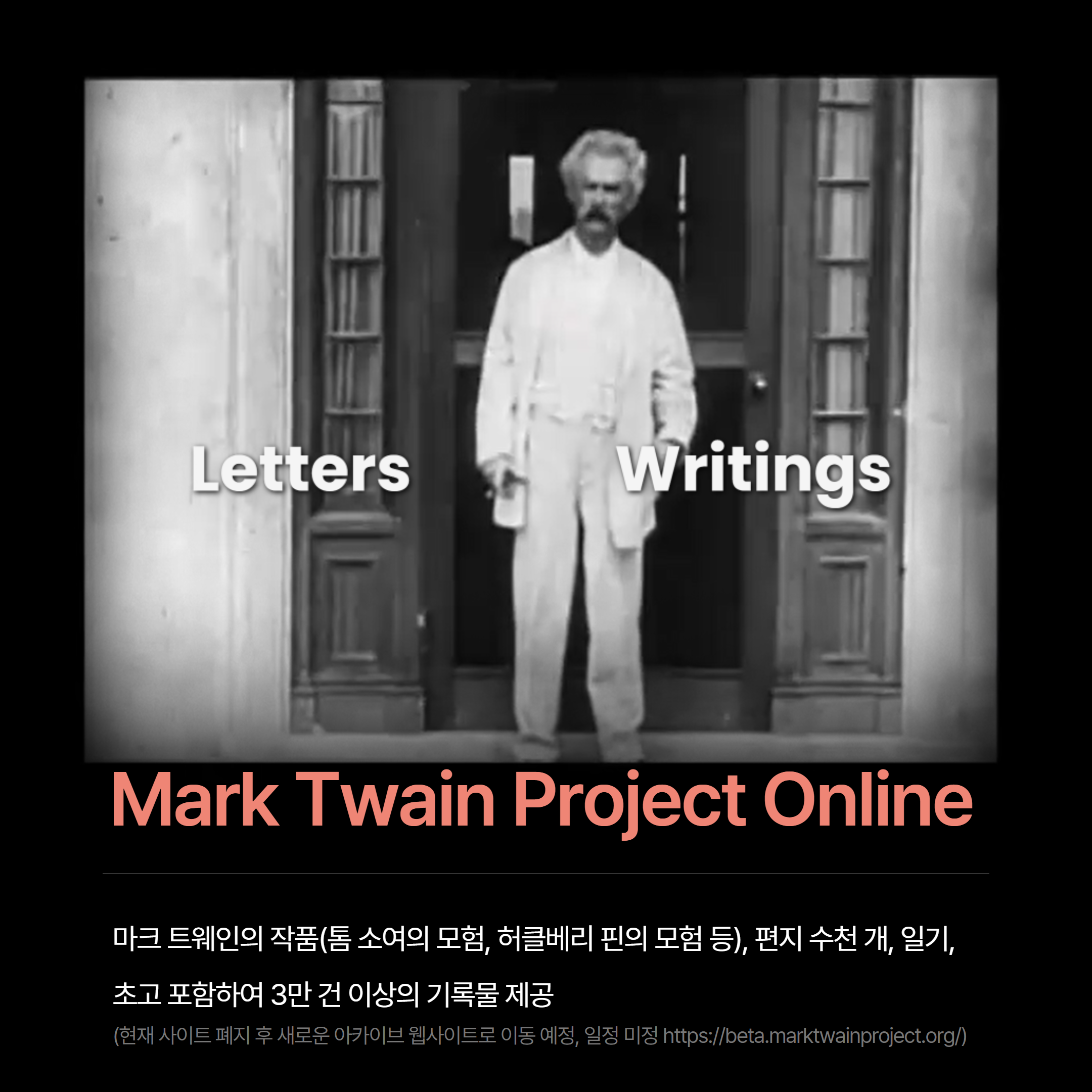 (현재 사이트 폐지 후 새로운 아카이브 웹사이트로 url 주소 이동 예정이며, 일정은 미정입니다. https://beta.marktwainproject.org/)