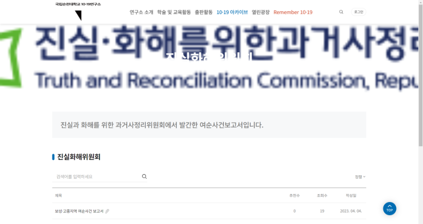 국립순천대학교 산하의 10·19 연구소에서 구축한 아카이브입니다. 2018년 4월에 여순연구소로 개소하였고 현재는 10·19 연구소로 명칭을 바꾸어 활동하고 있습니다. 2024년 2월 1일, 국립순천대 10·19연구소는 '여수/순천 10·19사건 진상규명, 희생자 명예회복에 관한 특별법' 시행 3주년을 맞아 10·19사건을 널리 알리고 관련 학문 후속세대와 신진 연구자 양성, 연구자들의 참여 증진을 목적으로 '아카이브'를 구축해 공개하였습니다. 10·19사건의 진실을 찾고 학살의 재발을 방지하고자 하며 연구소에서 진행한 학술 및 교육활동, 출판활동 및 여순사건 컬렉션을 보유하고 있으며 10·19연구소의 성과뿐만 아니라 10·19사건과 관련된 자료를 찾아볼 수 있습니다.