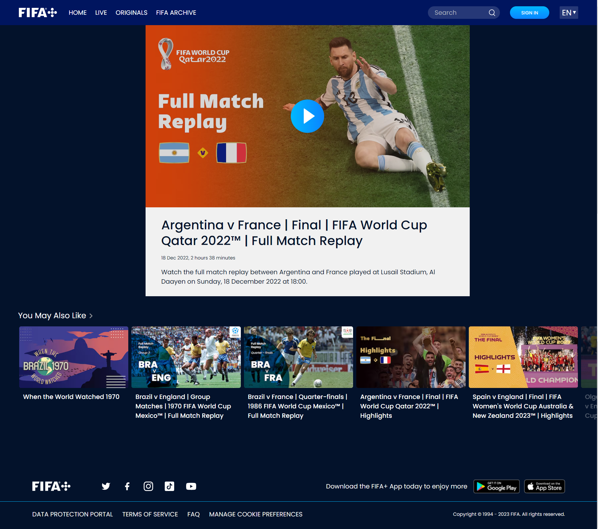 국제축구연맹(FIFA)에서는 축구를 통해 사회에 긍정적인 변화를 주고 사회적 책임을 다하기 위해 디지털 아카이브를 설립하였습니다. 평화롭고 포용적인 사회 증진을 위한 스포츠에 초점을 맞추고, 전세계와 축구로 커뮤니케이션 하고자 합니다. 월드컵 및 FIFA의 주요 경기의 라이브 방송과 경기 결과, 선수의 골 하이라이트, 부상 장면, 경기별 장면(순간)과 비하인드 스토리, 선수 개인의 이야기를 구분하여 컬렉션을 구성합니다. 피파 디지털 아카이브와 피파 오디오 아카이브도 함께 운영 중이지만, 이 두개의 아카이브는 회원가입 신청 및 접근권한 부여 신청 후 아카이브 이용이 가능합니다.