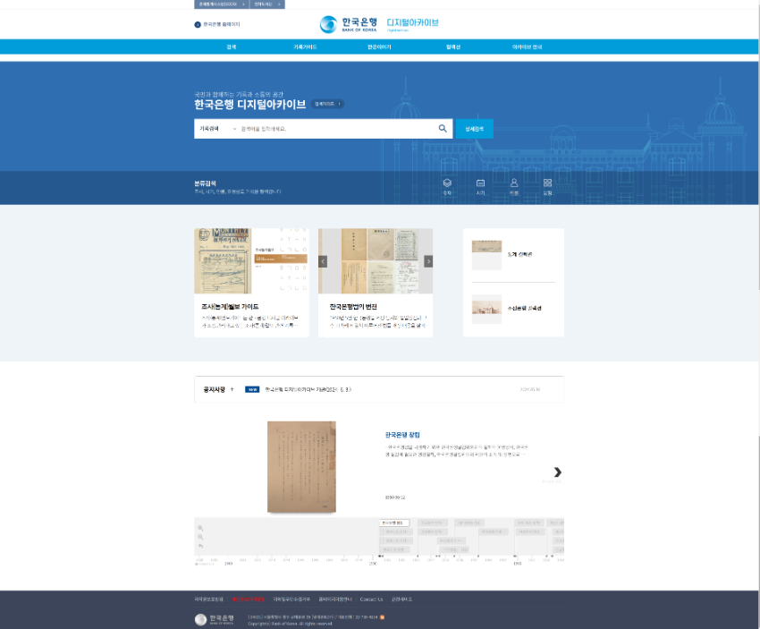 한국은행 아카이브는 그동안 당행이 중앙은행으로서의 역할을 수행해오는 과정에서 생산⋅수집해 온 역사기록물을 대외에 공개함으로써 일반 국민에게 우리나라의 경제⋅금융사를 깊이 이해하고 그 역사의 한복판에 아로새겨진 당행의 발자취를 되짚어 볼 뜻깊은 기회를 제공하고자 합니다. 앞으로도 한국은행 아카이브는 한국은행과 우리나라 금융경제에 관련된 다양한 유형의 역사기록물을 지속 발굴하고 체계적으로 관리하여 이를 후대에까지 온전히 전승하고자 합니다. 이를 통해 우리 국민이 시공간의 제약없이 한국은행과 끊임없이 소통할 수 있는 공간으로 자리매김할 수 있도록 꾸준히 노력해 나가겠습니다.